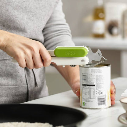El Abrelatas 3 en 1 de Joseph Joseph es una herramienta multifuncional que simplifica tus tareas en la cocina. Con un diseño innovador, combina tres funciones esenciales en un solo producto. Su mecanismo de corte de acero inoxidable garantiza la apertura eficiente y sin esfuerzo de latas, con un corte limpio y suave. Además, cuenta con un abridor de botellas integrado en el mango, ideal para destapar bebidas rápidamente. Con un elevador de anillo incorporado, facilita la apertura de latas de anilla sin riesgo de lesiones. Un accesorio imprescindible que agiliza tu rutina en la cocina.