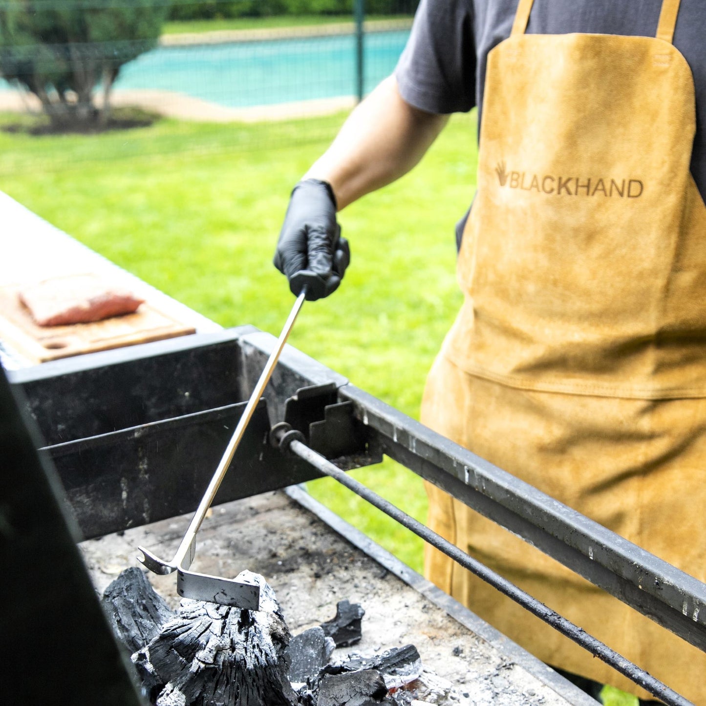 Domina el arte de preparar fuego con el Atizador de Acero de BlackHand, la herramienta esencial para todo parrillero. Diseñado para trabajar con carbón o leña, este atizador ofrece comodidad, seguridad y resistencia. Su doble función permite mover y acomodar el carbón, así como quebrar los pedazos más grandes gracias a su punta moledora. Fabricado en acero enchapado y equipado con un mango de polipropileno, este atizador de 63,5 cm es perfecto para manejar y ordenar las brasas en la parrilla, ayudándote a distribuir el calor y lograr una cocción óptima. Ya sea para asados caseros o eventos al aire libre, el Atizador de Acero BlackHand es tu compañero ideal para un fuego perfecto. ¡Adquiere el tuyo y conviértete en un profesional de la parrilla!