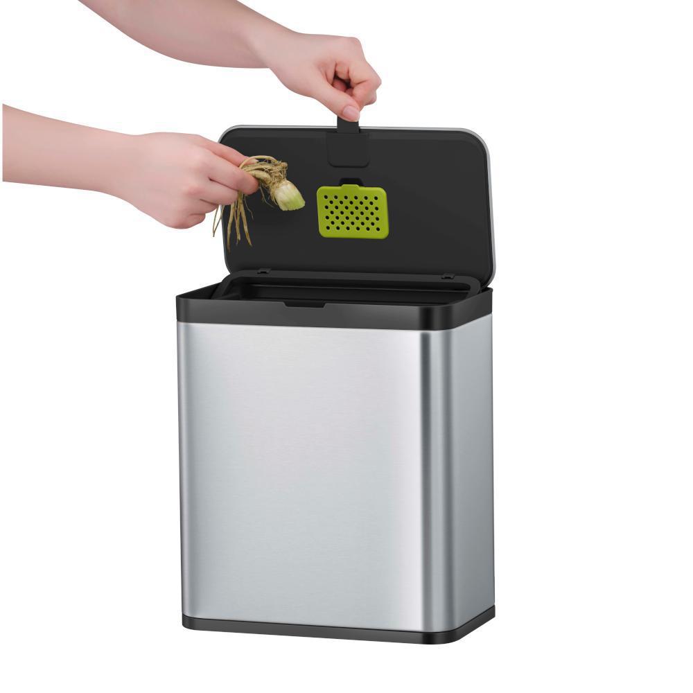 Ambiente Fresco: Incluye un compartimento desodorizante con filtro de carbón para neutralizar olores, ideal para residuos orgánicos.