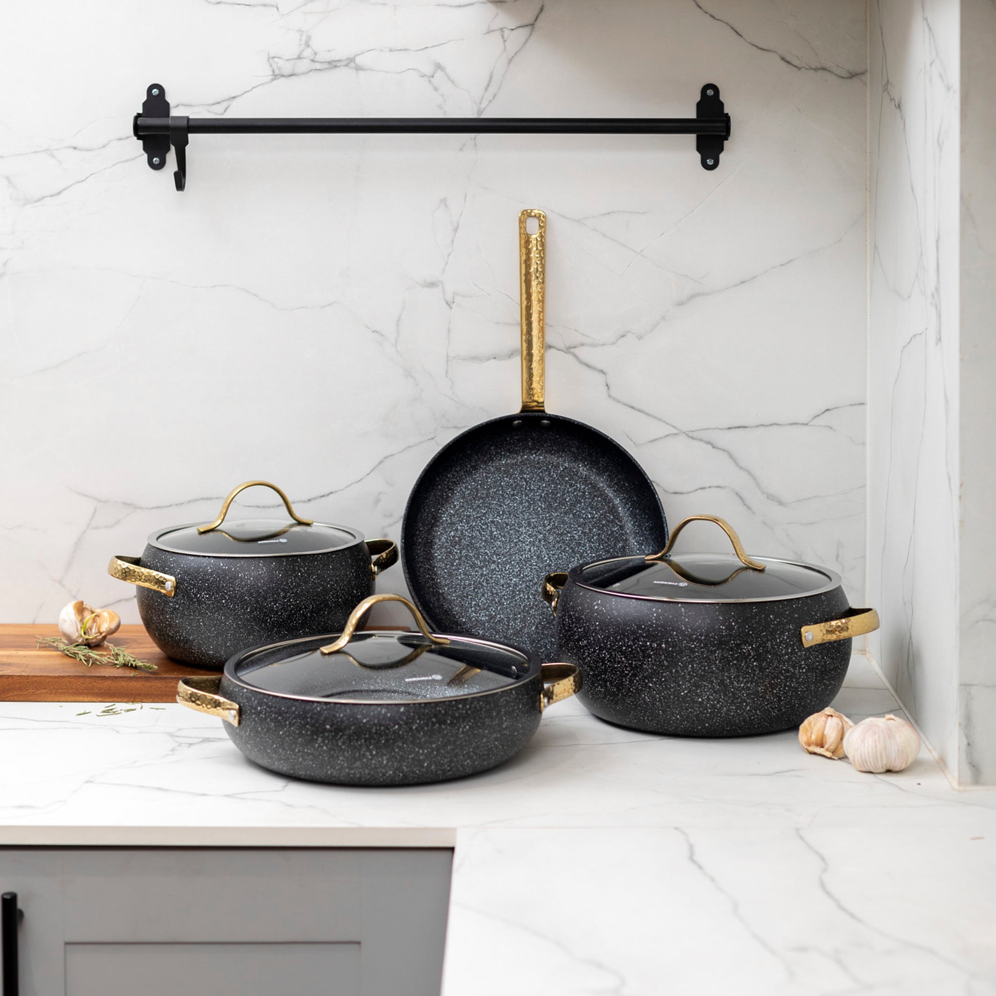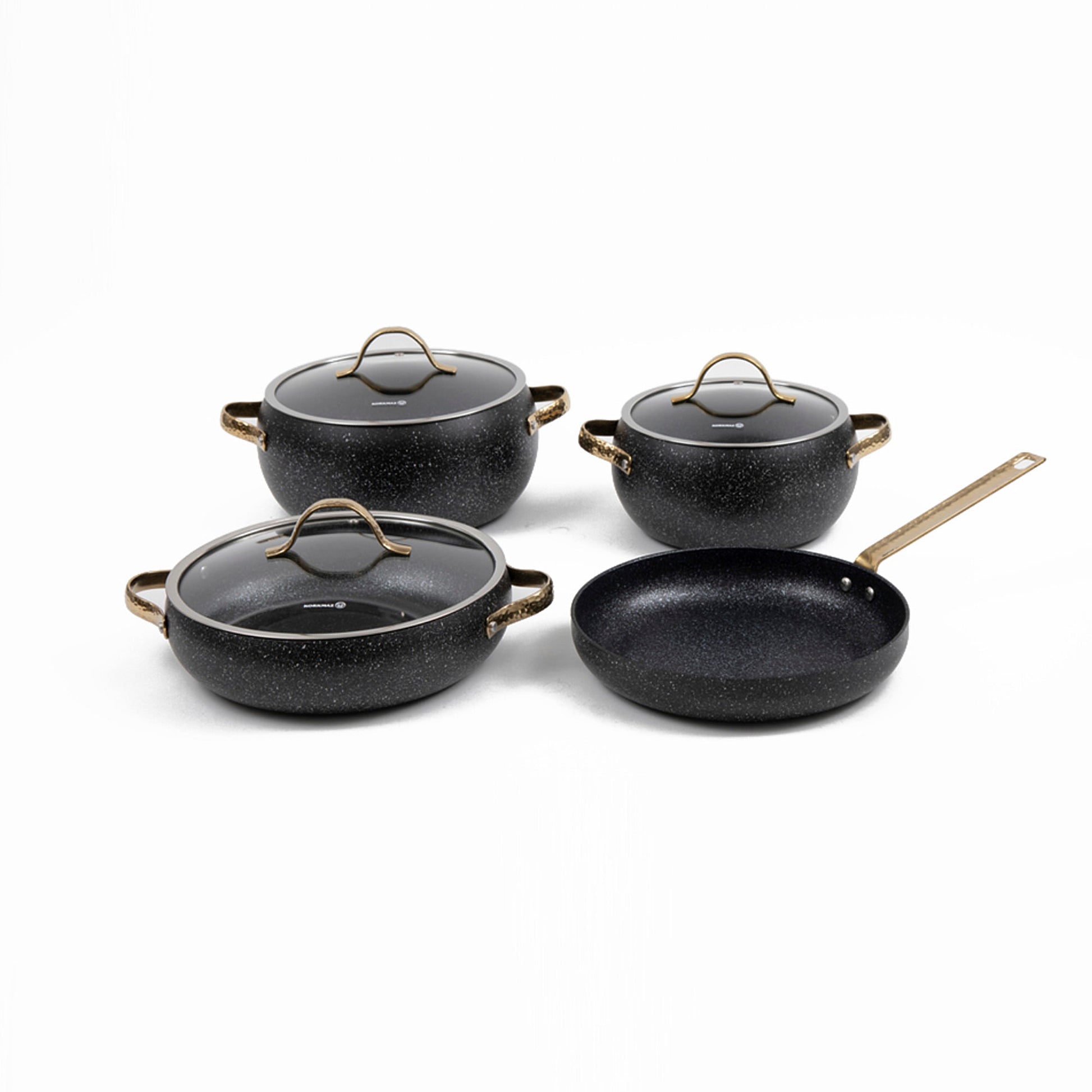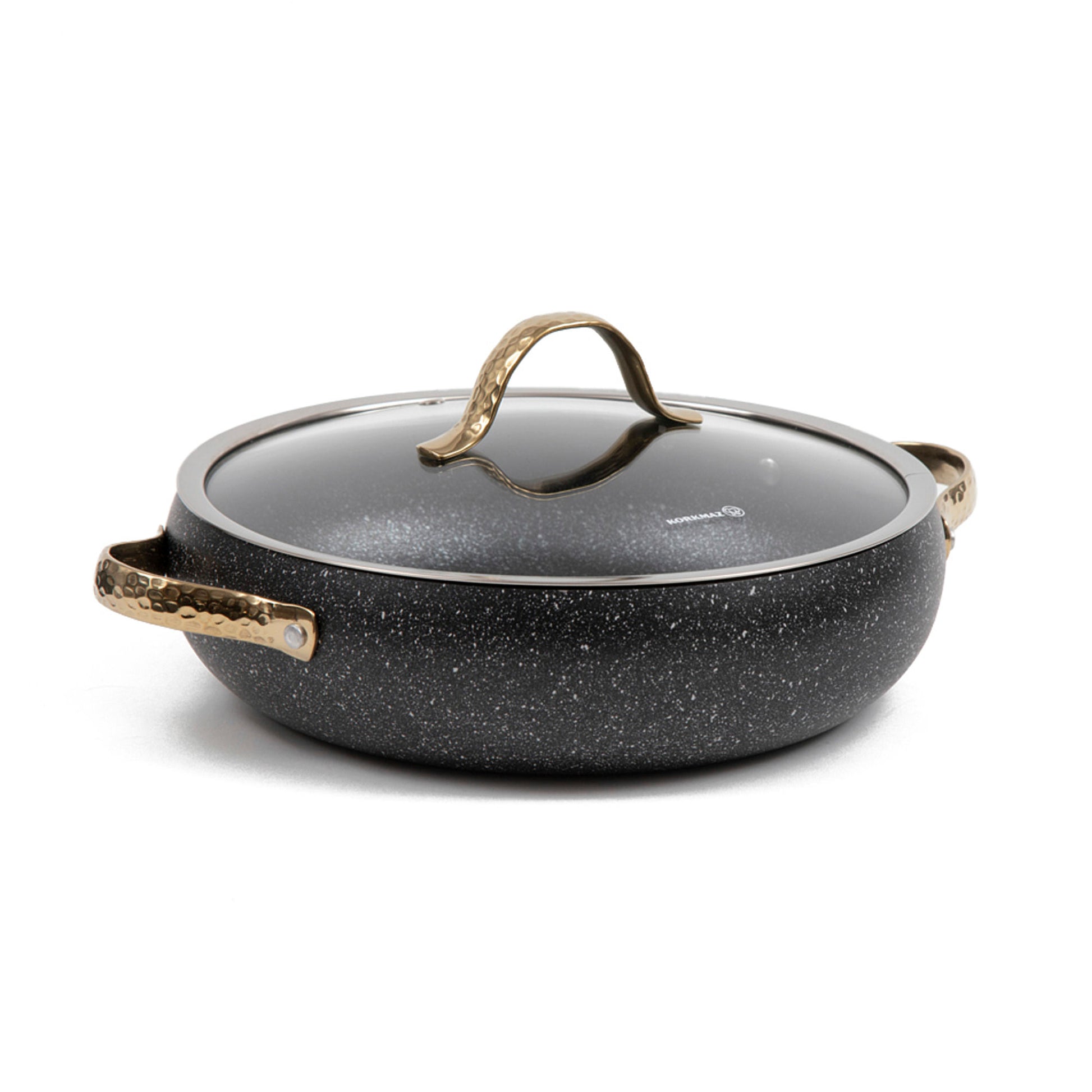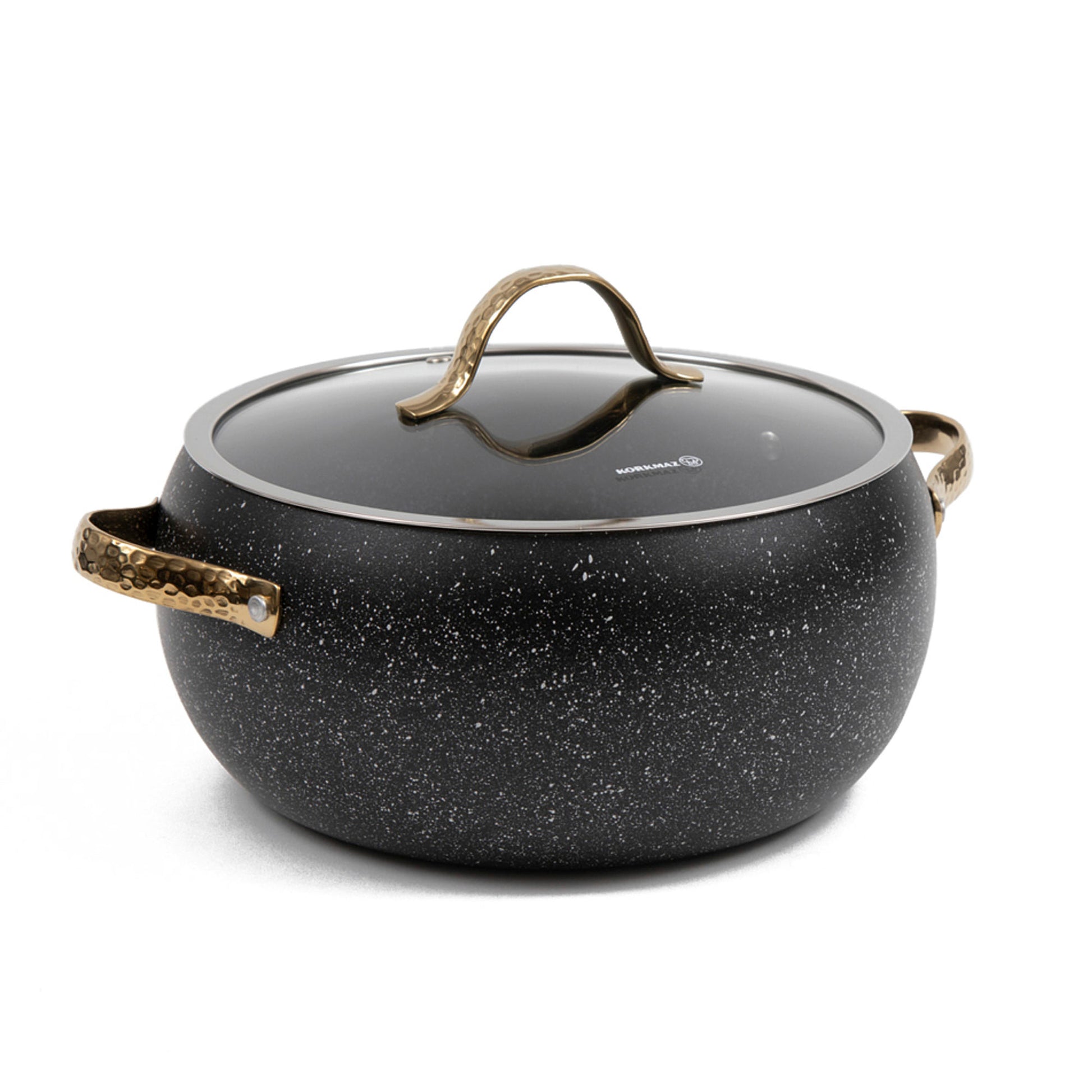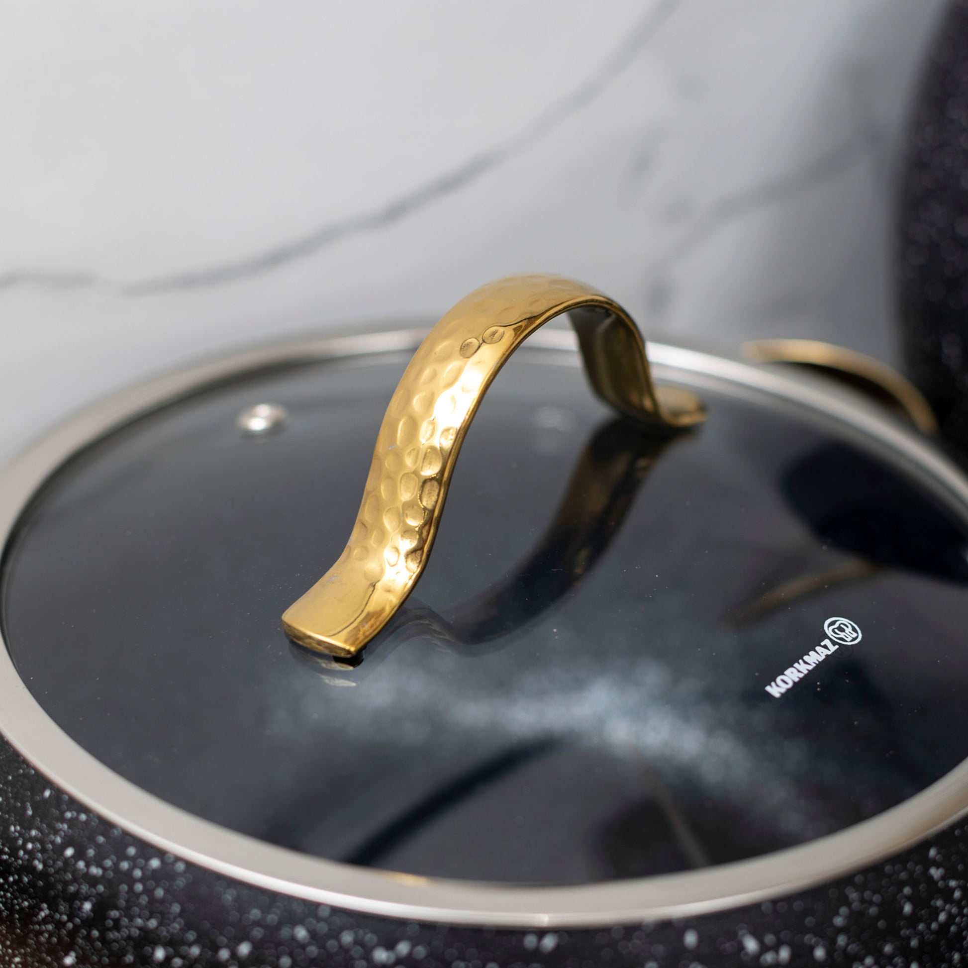 La Batería Berilla 7 Pzs Korkmaz es sinónimo de resistencia, diseño y practicidad para tu cocina. Incluye olla mediana 20 x 11 cm – 3,5 L, olla honda 24 x 12,4 cm – 5,7 L, olla baja 26 x 7,5 cm – 3,5 L y sartén 26 x 4,5 cm – 2 L, piezas versátiles que se adaptan a distintas preparaciones. Su recubrimiento de PTFE de aspecto volcánico ofrece excelentes propiedades antiadherentes, alta resistencia a los arañazos y durabilidad prolongada. Libre de plomo, cadmio y PFOA, garantiza comidas más saludables y seguras. Con una alta conductividad térmica, permite cocinar de manera eficiente incluso a fuego lento. Apta para lavavajillas, es un set confiable y moderno que une diseño y funcionalidad en cada preparación