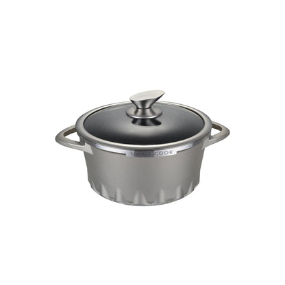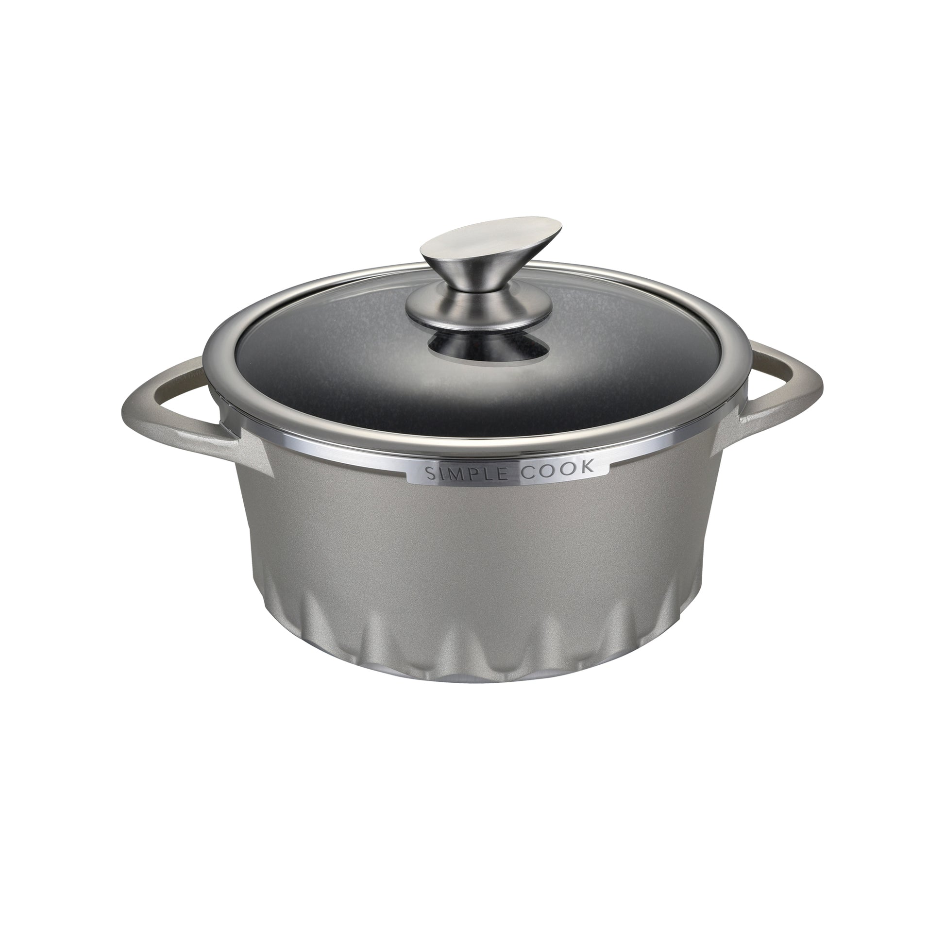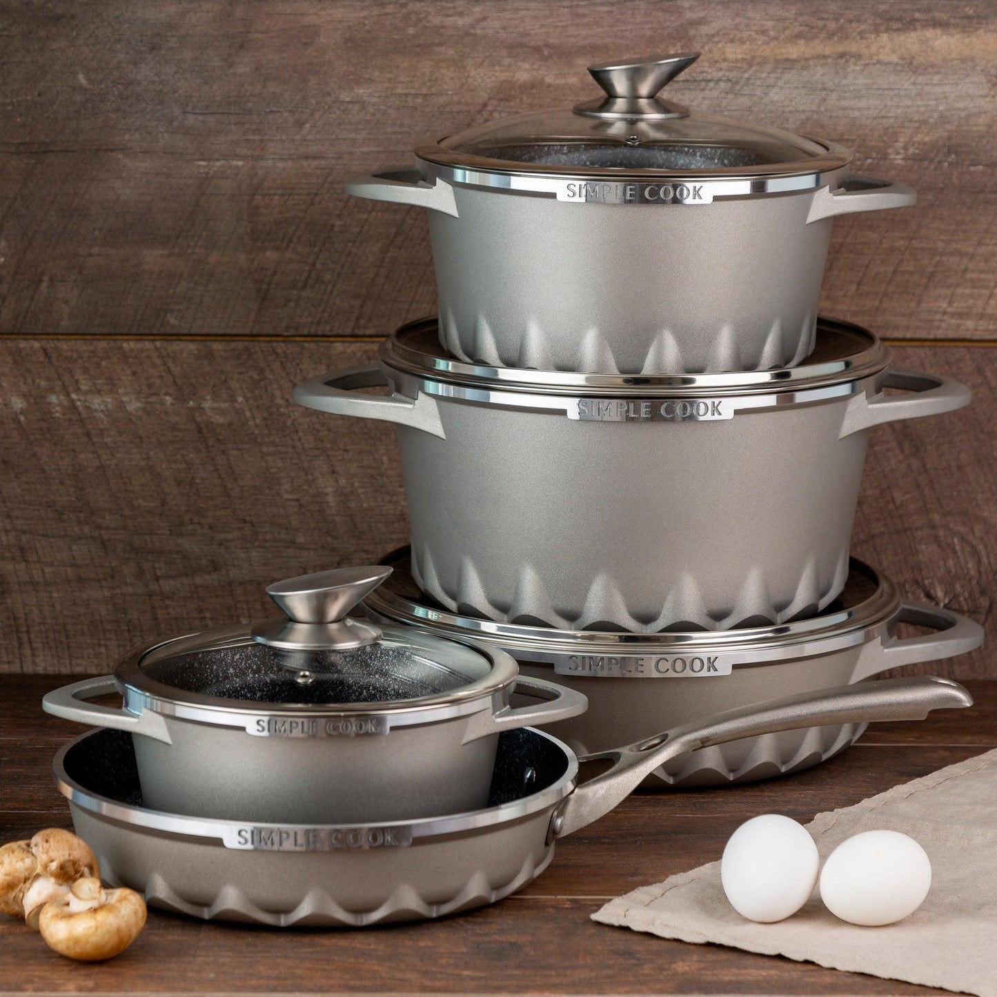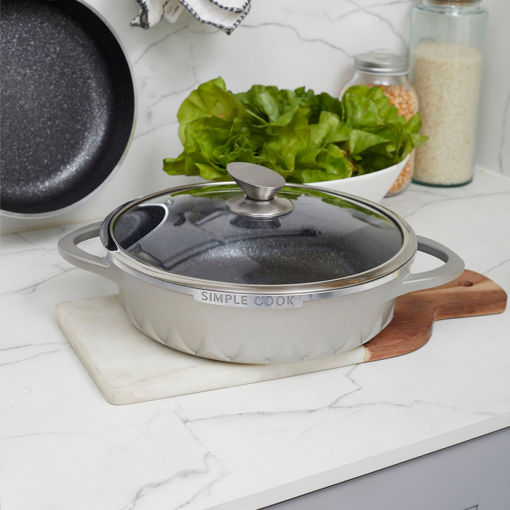 La Batería de Cocina Mont Blanc 9 pzs Simple Cook de aluminio forjado es ligera, resistente y fácil de manipular. Su diseño moderno, con líneas geométricas en la base, le da un aspecto premium y minimalista, mientras que el acabado metálico mate con detalles en acero inoxidable aporta un look sofisticado. Soporta altas temperaturas y ofrece gran conductividad térmica, asegurando una cocción eficiente. Su interior cuenta con revestimiento antiadherente Pfluon, libre de PFOA y GenX, para una cocina más saludable.