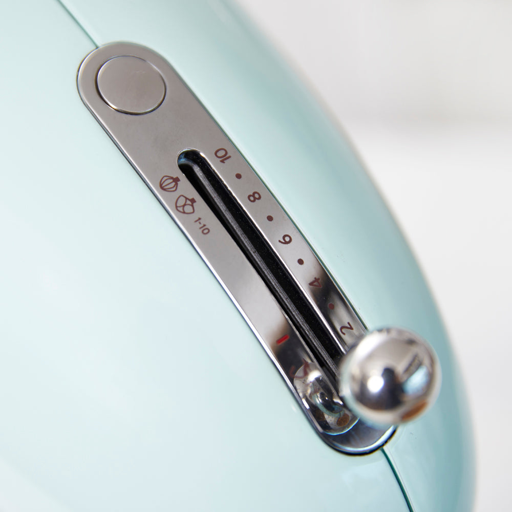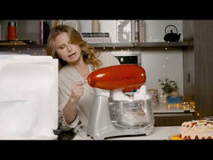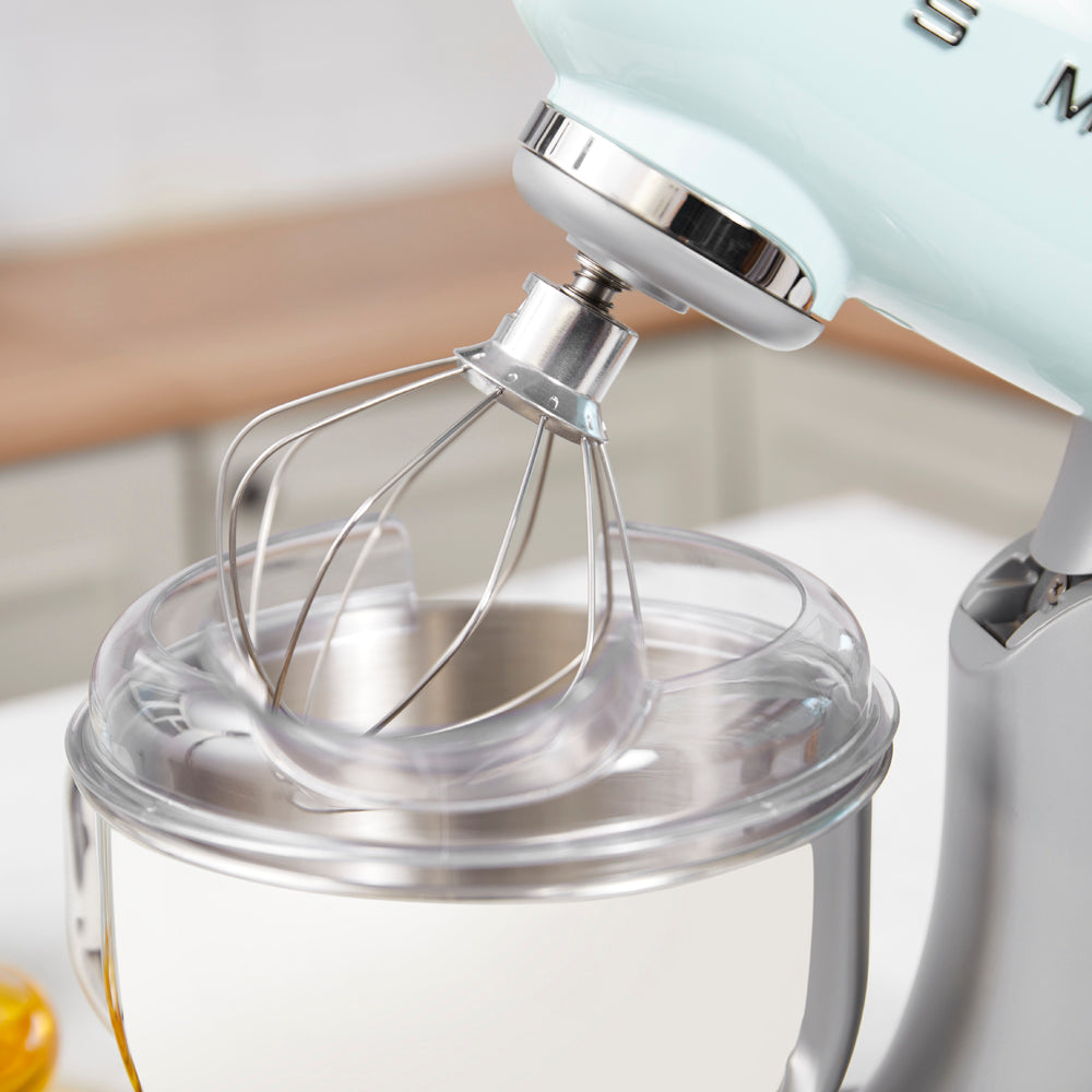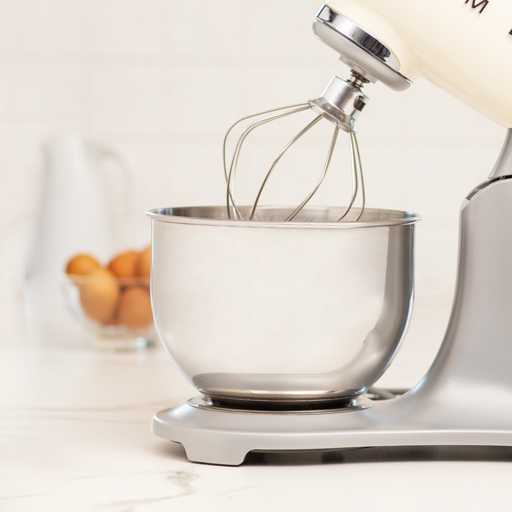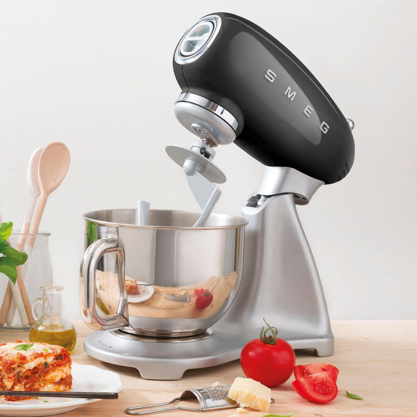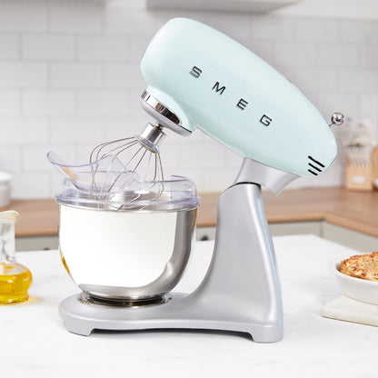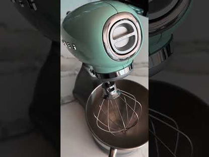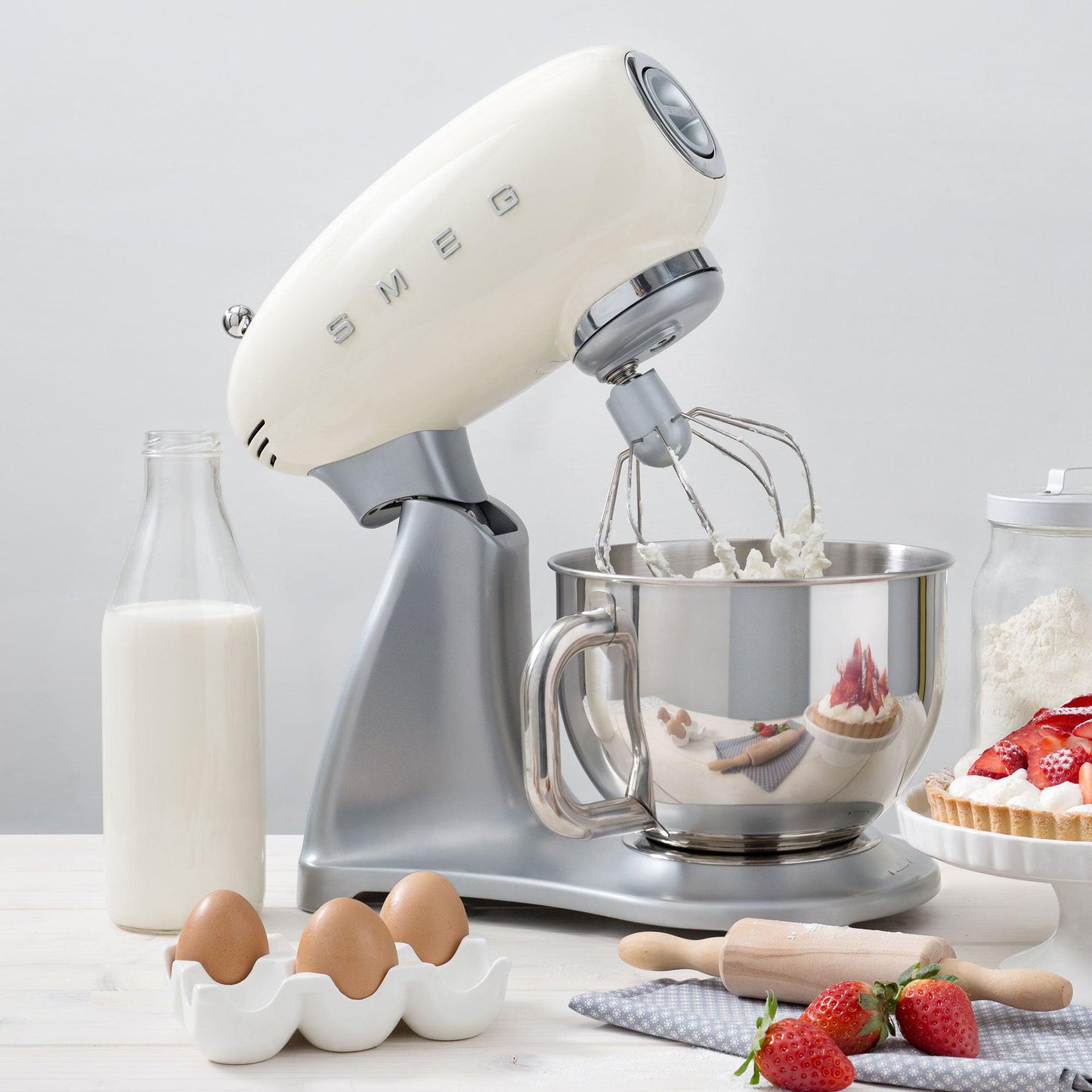 Con su estilo retro característico esta batidora de pedestal Smeg cuenta con 800 W de potencia que puede ser ajustado en sus 10 velocidades, cada una con arranque suave. Cuenta con movimiento planetario, base antideslizante y sistema bloqueo seguridad cuando el cuerpo esta levantado.