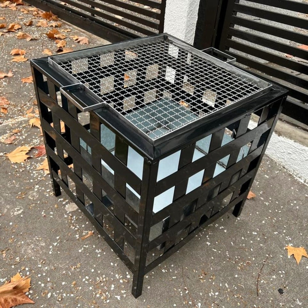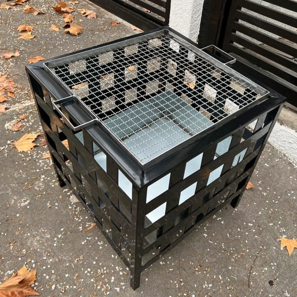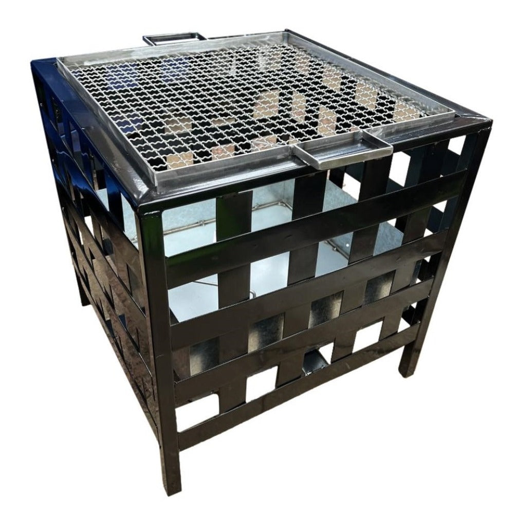 Con el Brasero Enrejado de Gran Capacidad Kas Chile podrás disfrutar de tu terraza o jardín durante todo el año! Este fogón brasero está elaborado 100% en fierro de alta resistencia. Se puede utilizar con carbón o leña. Se compone de una estructura exterior cuadrada negra y un amplio contenedor interior desmontable para limpieza. Además incluye una gran parrilla para hacer asados! El contenedor interior se encuentra elevado del piso para evitar quemaduras a la superficie de contacto. Medida 54x54x50 cm de alto.
