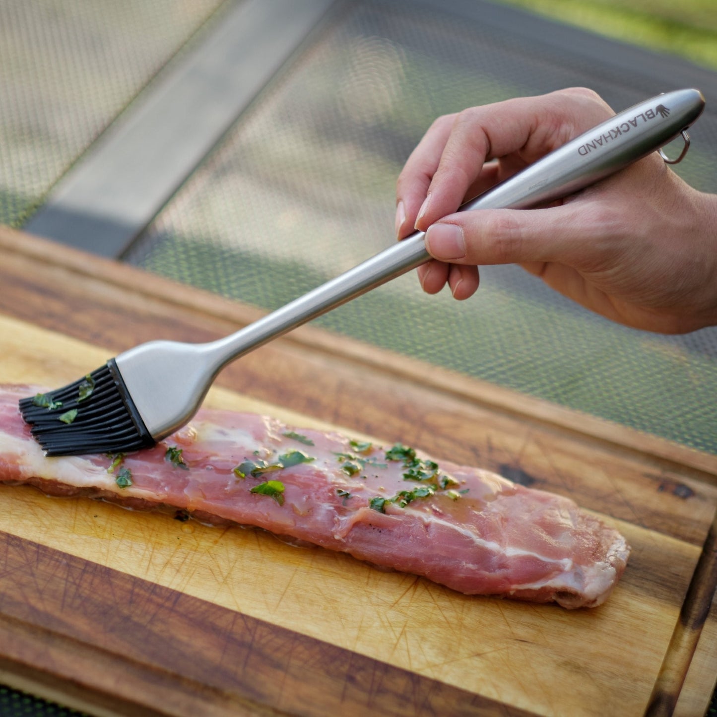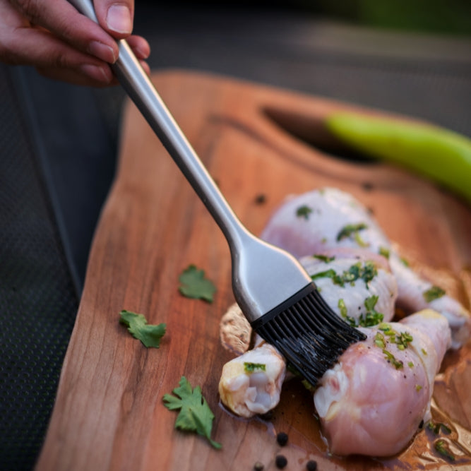 Dale sabor y ponte creativo con esta brocha para adobar y sazonar preparaciones. Para recubrimiento rápido, limpio y sin esfuerzos. Sus hilos de silicona son resistentes a altas temperaturas (más de 200°C) y son muy fáciles de limpiar. Material acero inoxidable S430 de gran resistencia y comodidad para el tacto, no tóxico para alimentos. Proporciona gran durabilidad de uso. Viene en empaque cero plástico y reciclable.