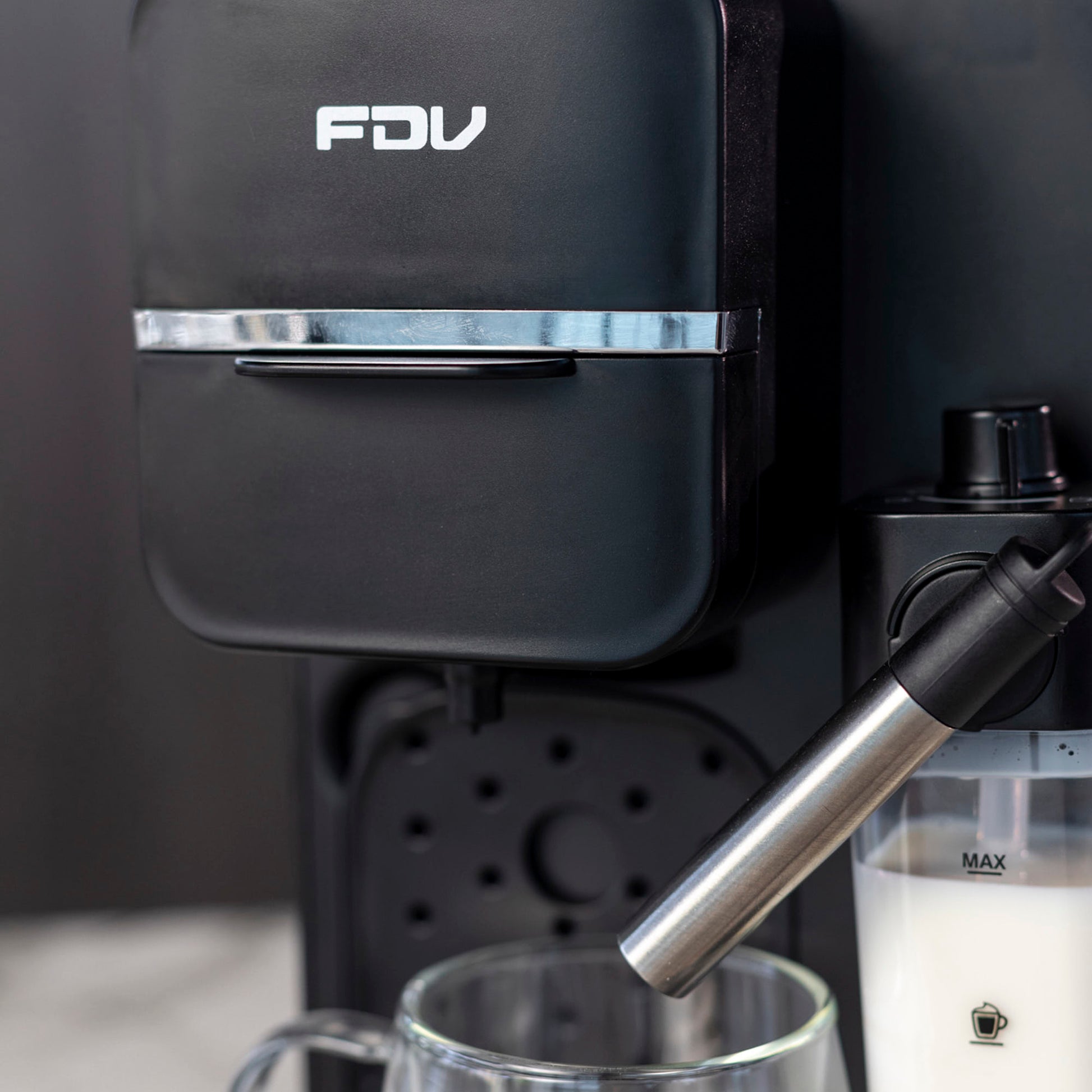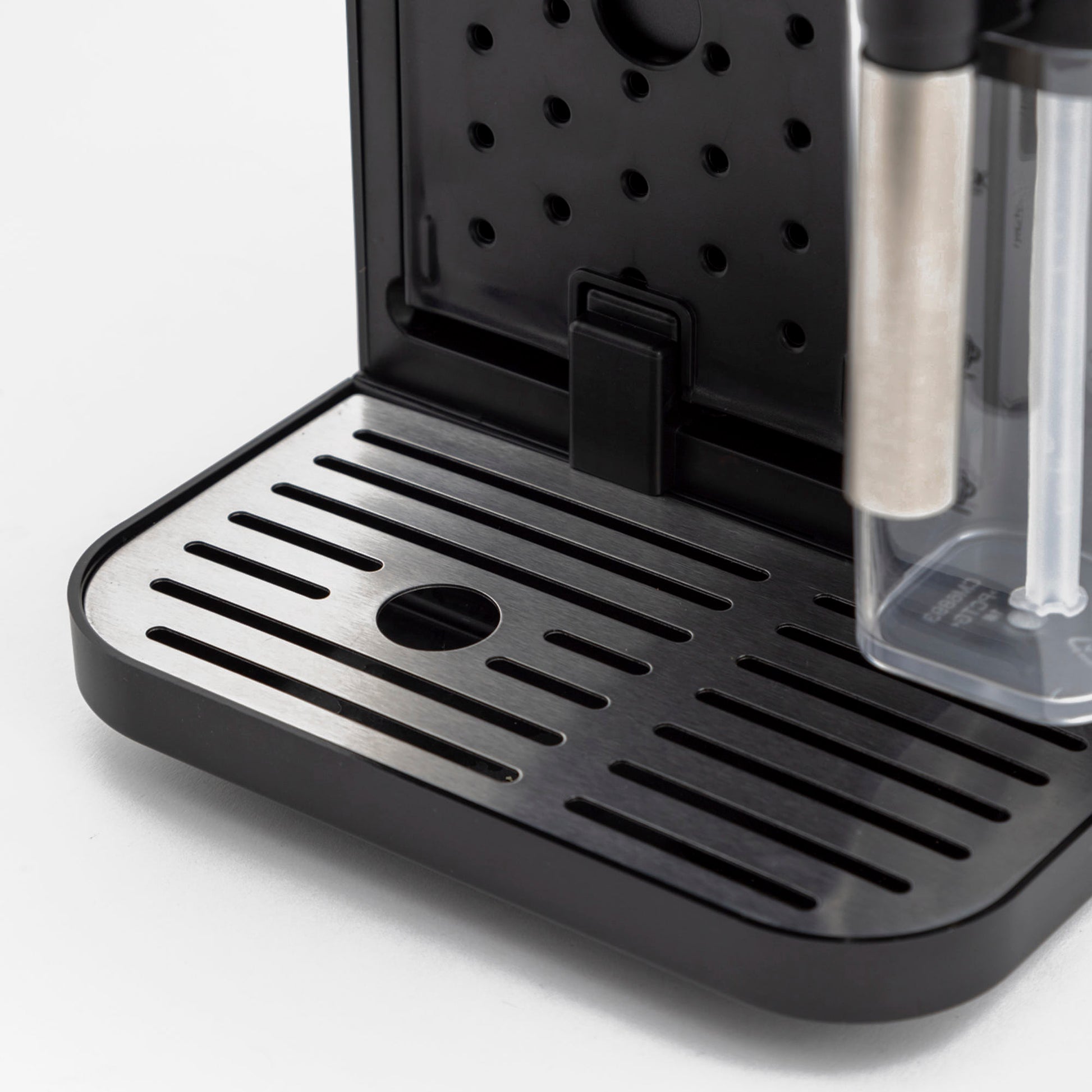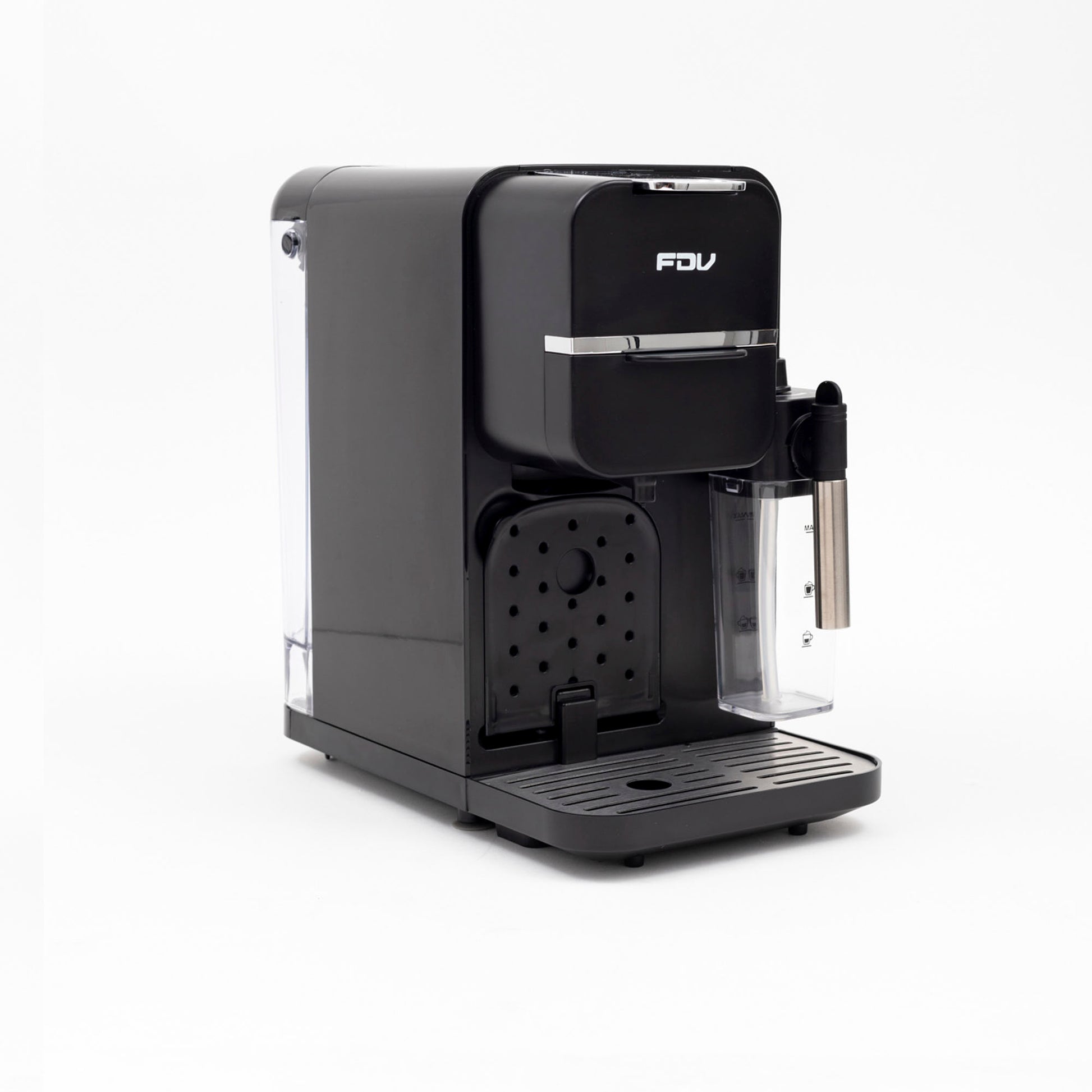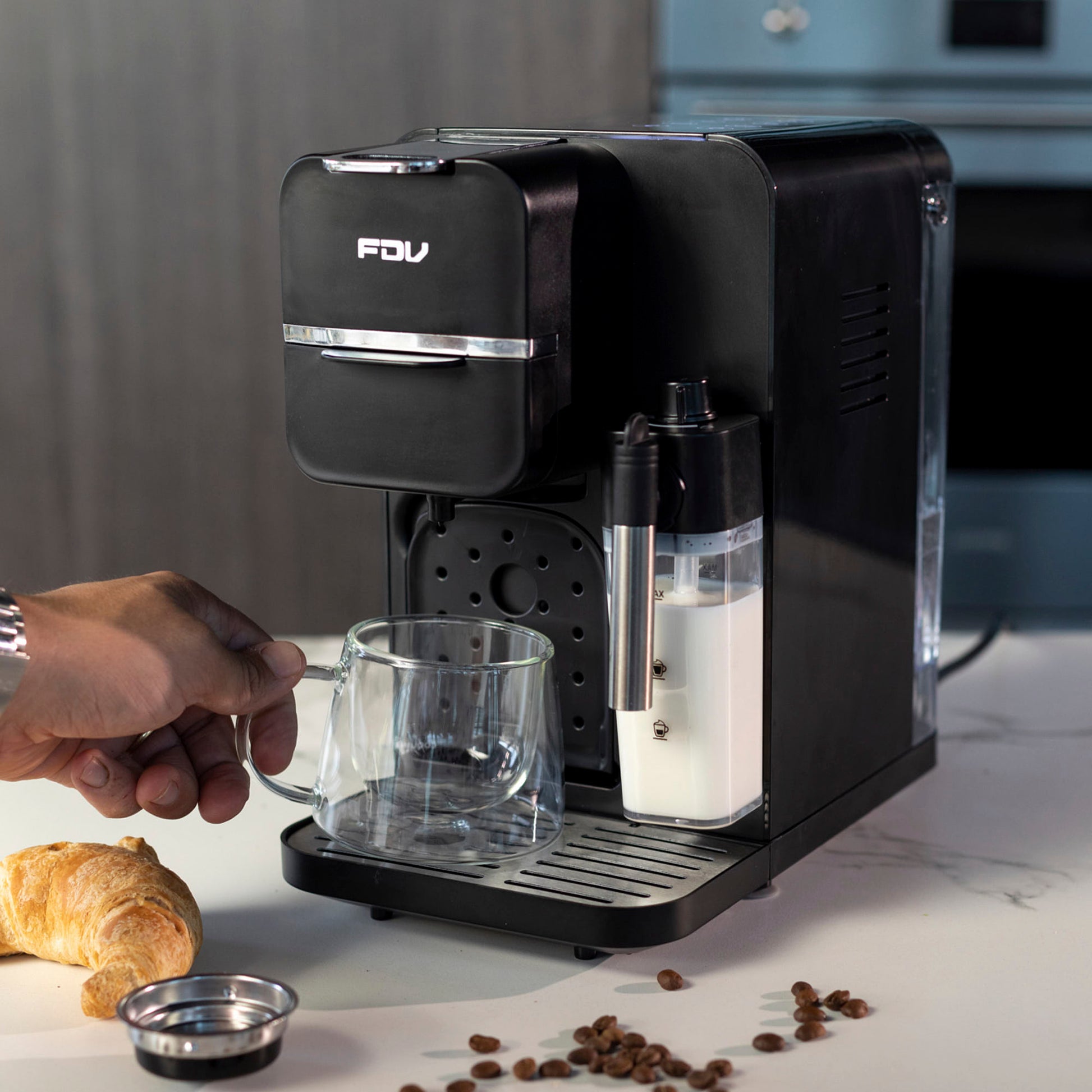 Disfruta del café perfecto en casa con esta cafetera 4 en 1, diseñada para preparar espresso, cappuccino, latte y café con leche. Su bomba italiana de 20 bares garantiza una extracción intensa y aromática, mientras que el sistema Thermoblock calienta el agua rápidamente. El control volumétrico permite elegir taza corta o larga, y el depósito de leche de 150 ml con vaporizador crea espuma cremosa automáticamente. Compatible con cápsulas Nespresso, Dolce Gusto y café molido, incluye botones retroiluminados de un solo toque para preparar tus bebidas favoritas de forma rápida y sencilla. Ideal para comodidad y calidad profesional en casa.