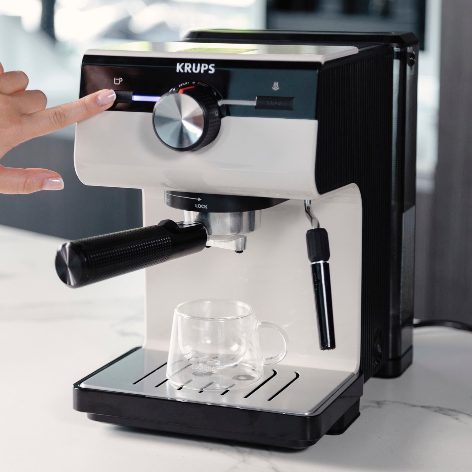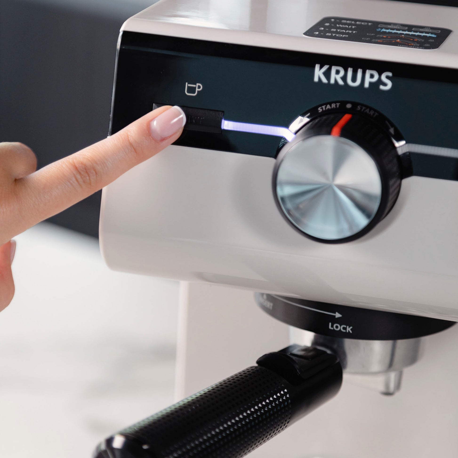 Disfruta un auténtico espresso con crema perfecta gracias a la presión de 15 bares y una caldera que mantiene la temperatura constante. Su selector manual frontal permite preparar una o dos tazas o espumar leche con control intuitivo. Con diseño moderno en gris claro, patas antideslizantes y almacenamiento inteligente de filtros.