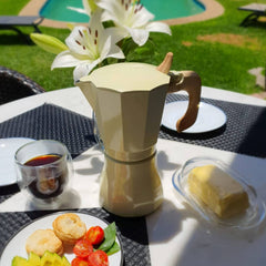 Prepara un café espresso perfecto con la Cafetera Inducción Petra de 12 Tazas de la marca Oroley. Esta cafetera italiana, diseñada para el amante del café que aprecia un sabor y cuerpo intensos, tiene la capacidad de servir hasta 12 tazas. Compatible con todo tipo de encimeras, incluyendo eléctricas tipo anafe, gas, vitrocerámica, cocina convencional e inducción, ofrece una flexibilidad excepcional en la cocina. Su sistema de presión por vapor supera a las cafeteras tradicionales, asegurando una extracción más eficiente y rica del café molido. Ideal para reuniones o para quienes disfrutan de múltiples tazas al día, la Cafetera Petra transforma cada pausa de café en una experiencia deliciosa y aromática.