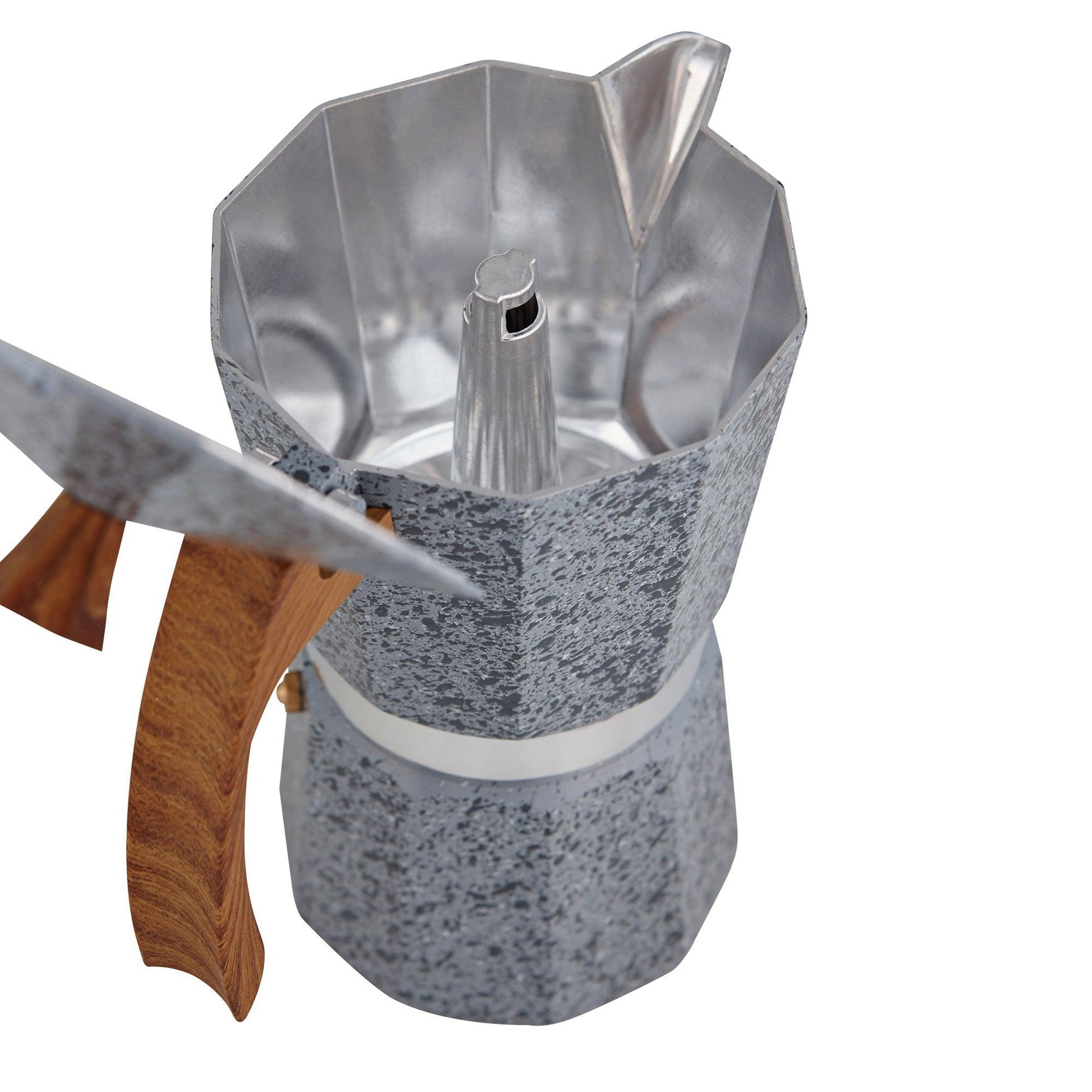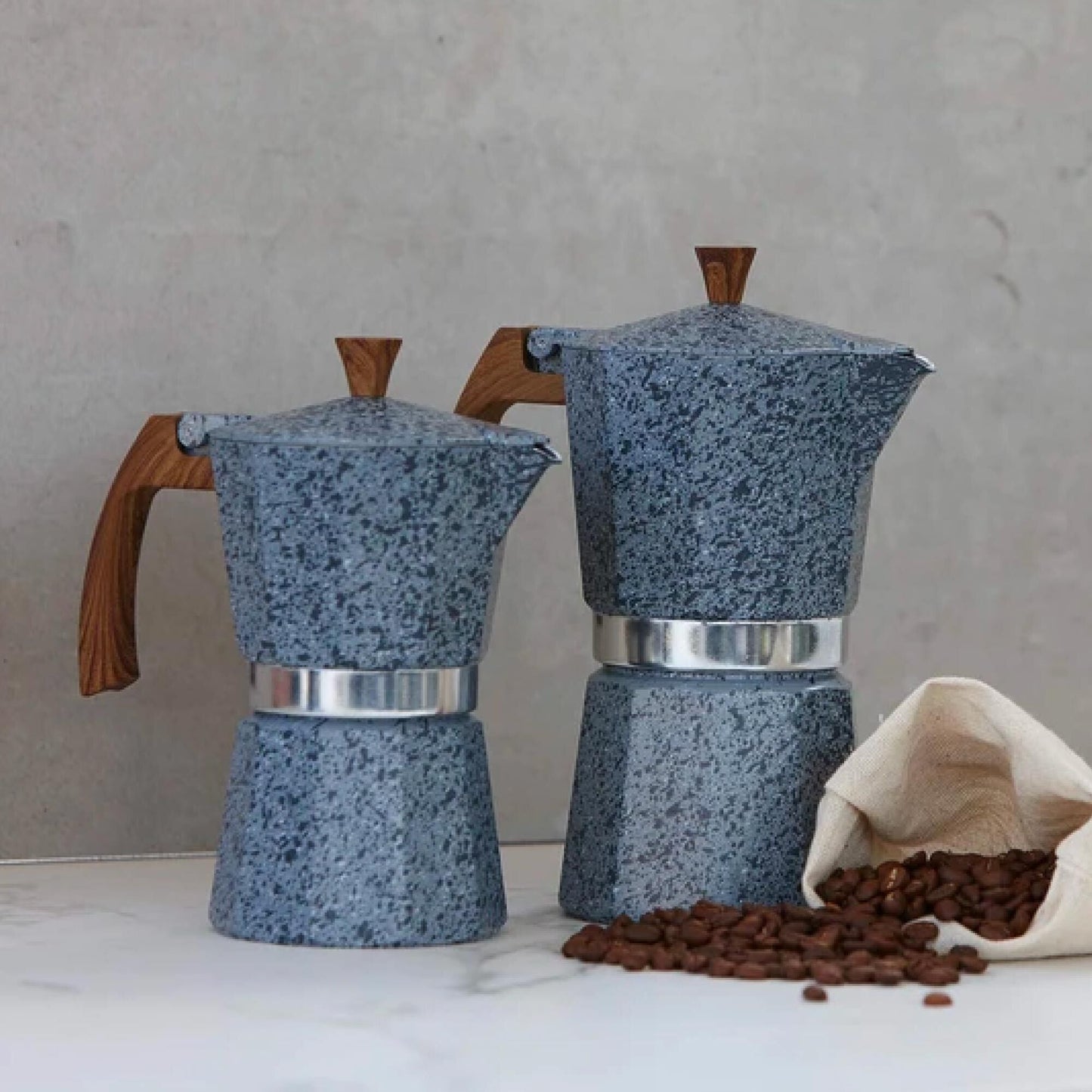 Las nuevas cafeteras italianas Pompeya, para 6 y 9 tazas expresso destacan por su preparación particular obtienes cafés con un sabor más intenso que lo que te entregan otras cafeteras por filtro o por goteo. Diseño distintivo con su imitación mármol en el exterior y perillas de madera ¡Bellisimo!
