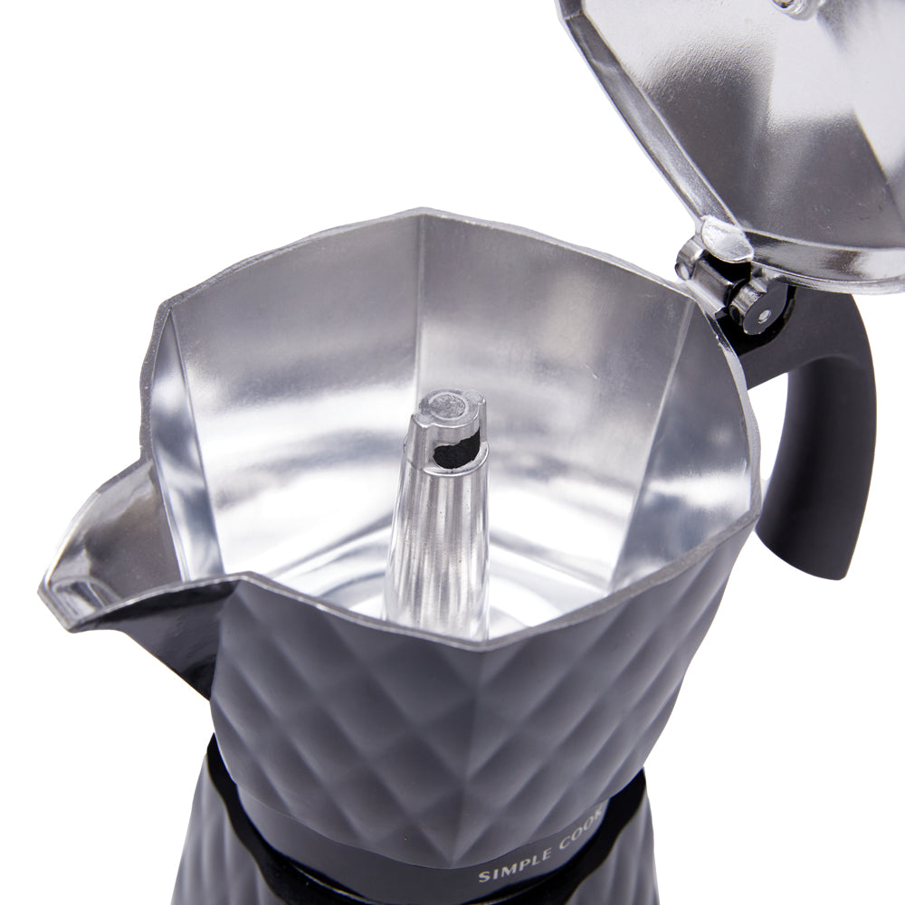 Un sabor diferente: Eso ofrece la Cafetera Italiana Roma 6 Tazas Simple Cook, debido a su contacto por más tiempo con el café molido, entregándote una bebida de mayor intensidad y cuerpo distinto al que se obtiene de las cafeteras por goteo o de filtro, ofrece un café fuerte y concentrado similar al espresso, usando molido fino. Es apta para encimeras electricas y a gas, rinde hasta 6 tazas expresso y posee con un diseño único que no dejarás ir.