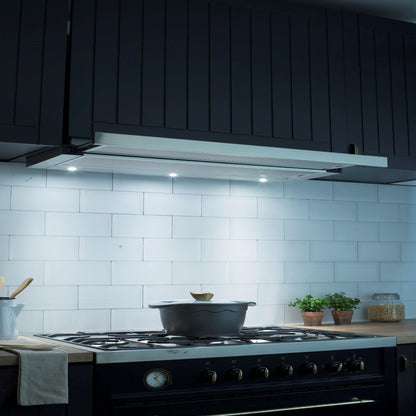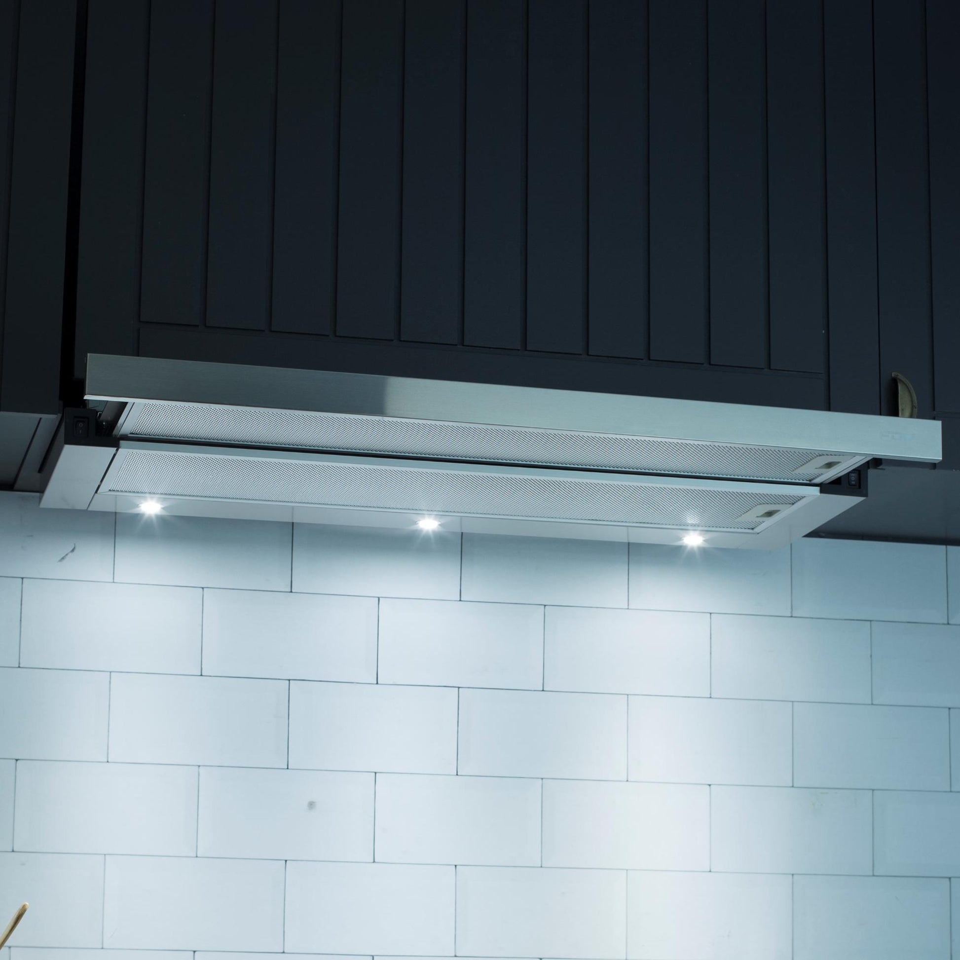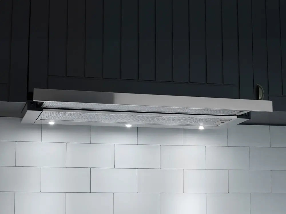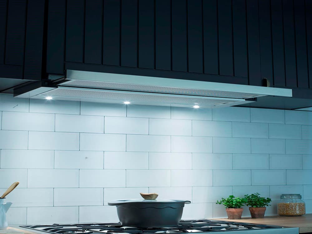 Diseñada para montaje bajo mueble, es compatible con recirculación o salida exterior y ofrece 2 velocidades para un control flexible según tus necesidades de cocción.