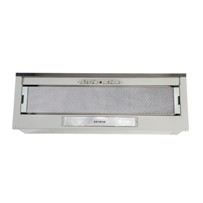 Bajo mueble de 90 cm, con dos velocidades y capacidad de aspiración de 500 m³/h. Admite instalación con recirculación o salida exterior. Su diseño eficiente y silencioso (55 dBA) la convierte en una opción práctica para cocinas modernas.
