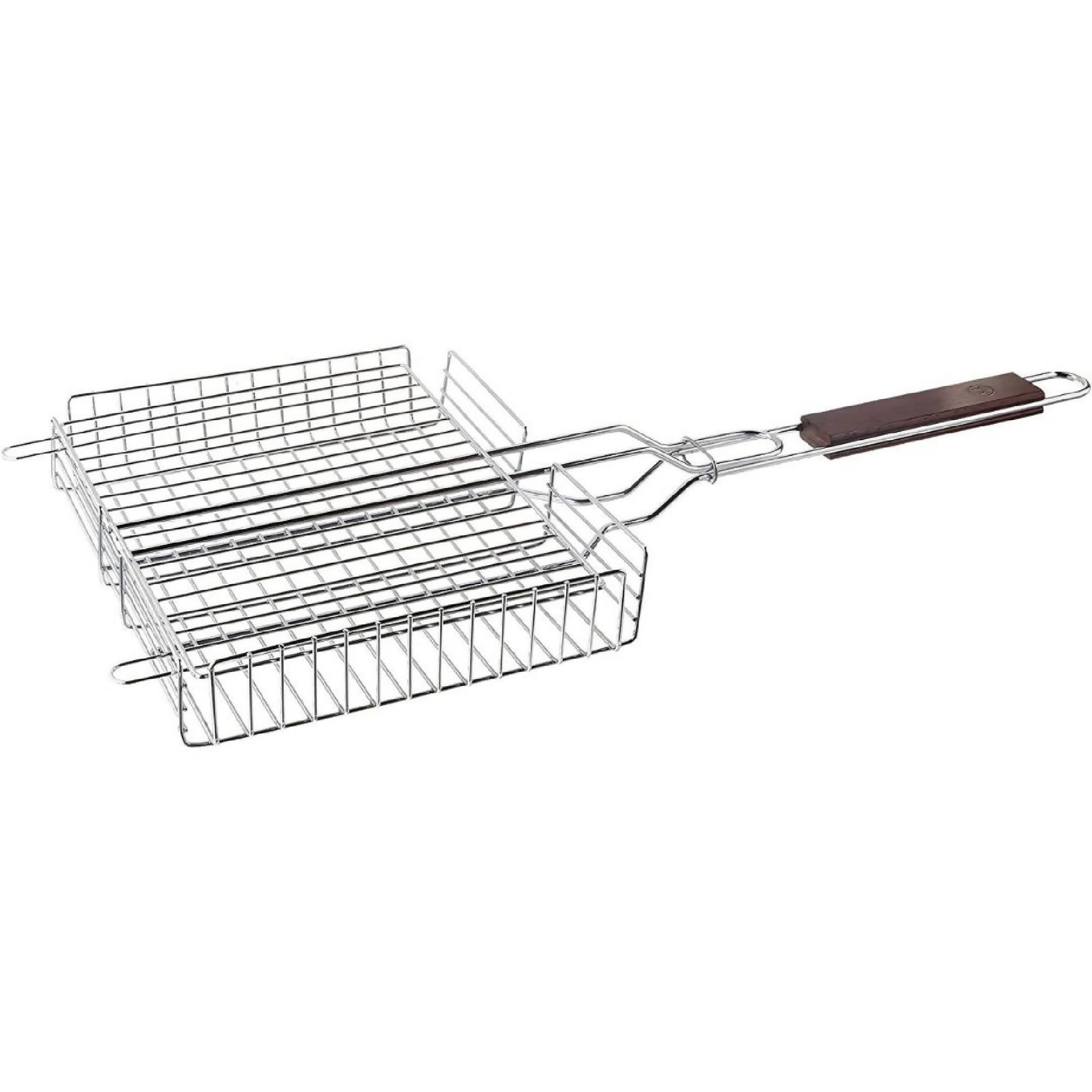 Donde sea que este asando todo será mas simple versátil herramienta para asar. Simplemente cargue la canasta de la parrilla con carne, pescado, pollo, verduras... ¡las opciones son infinitas! La canasta se voltea fácilmente para lograr un dorado perfecto en todos los lados y la larga longitud mantiene sus manos alejadas del calor intenso. Construida con acero cromado de gran calibre, la canasta cuenta con un asa fina de palisandro sólido que conduce el calor lentamente para minimizar las quemaduras. Cuando no está usando esta herramienta imprescindible para la parrilla, se traba para un almacenamiento seguro y fácil.
