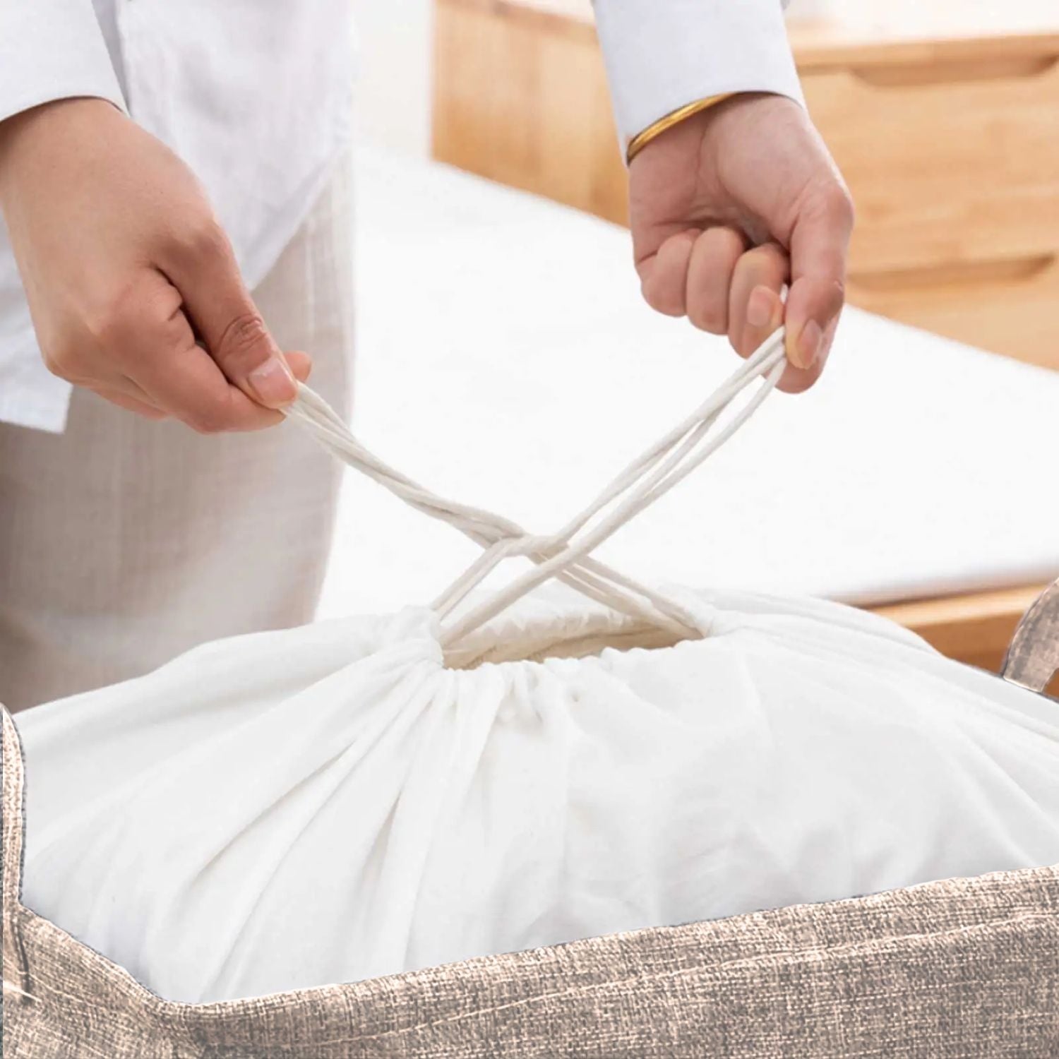 Descubre la conveniencia y la practicidad de la Cesta de Lavandería Washday de Santú Home & Deco. Fabricada en tela reforzada, esta cesta es ideal para mantener ordenada la ropa sucia antes del lavado. Su diseño espacioso y el cierre con cordón garantizan que tus prendas estén seguras y protegidas en todo momento. Perfecta para familias ocupadas y personas que buscan mantener su hogar impecable.