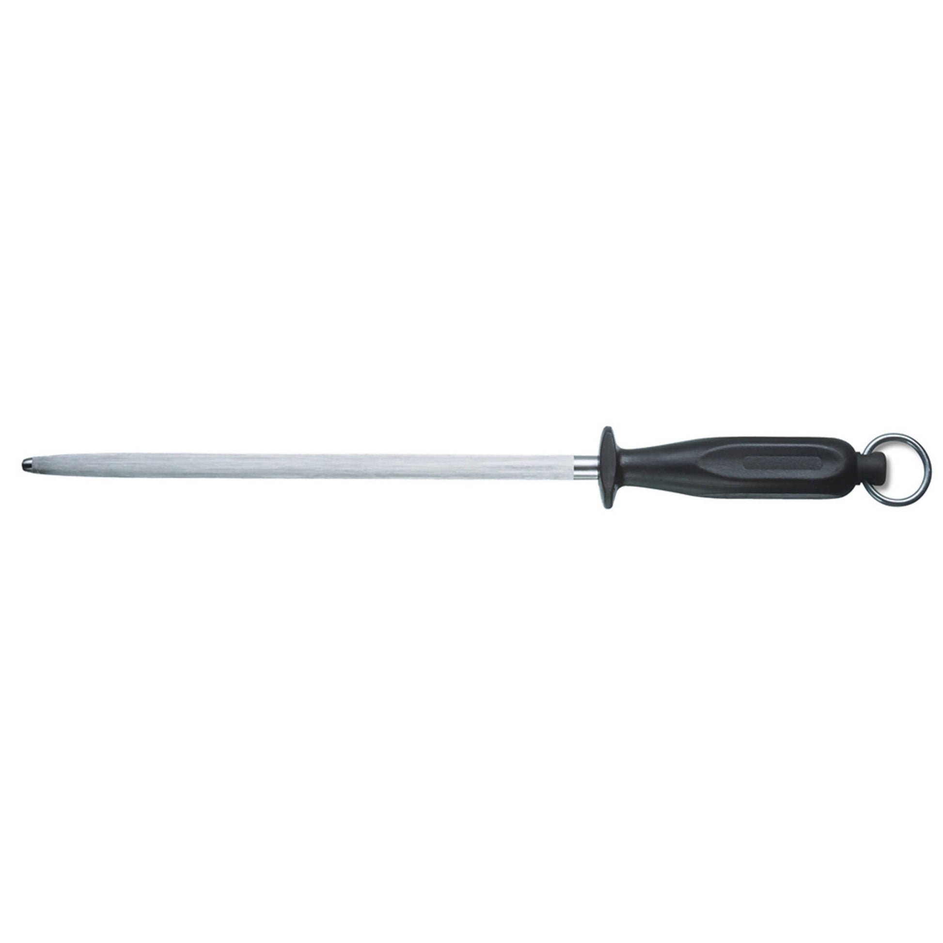 Para disfrutar del placer de cocinar, es imprescindible disponer de cuchillos bien afilados , y para conservar siempre un filo perfecto , es necesario utilizar regularmente la chaira. Este utensilio es perfecto para asentar el filo del cuchillo y darles una larga vida útil, además su manipulación sencilla y efectiva. Fabricada con acero cromo con cable en plástico y anillo para colgar.
