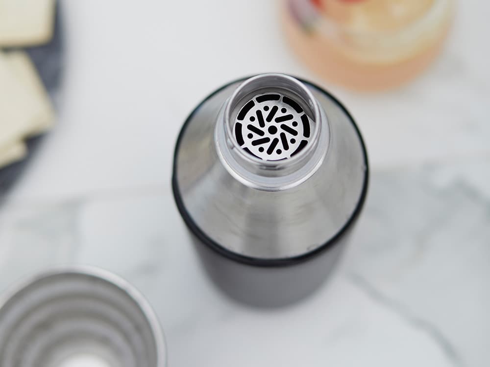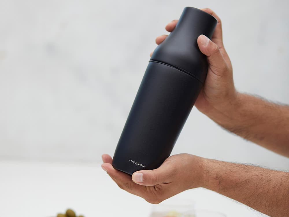 La coctelera está totalmente hecha de acero inoxidable 18/8 de grado alimenticio, eliminando cualquier riesgo de transferencia de sabor metálico a tu cóctel o bebidas; sus curvas cóncavas de diseño ergonómico garantizan un agarre cómodo con una sola mano sin el engorroso agarre con dos manos.