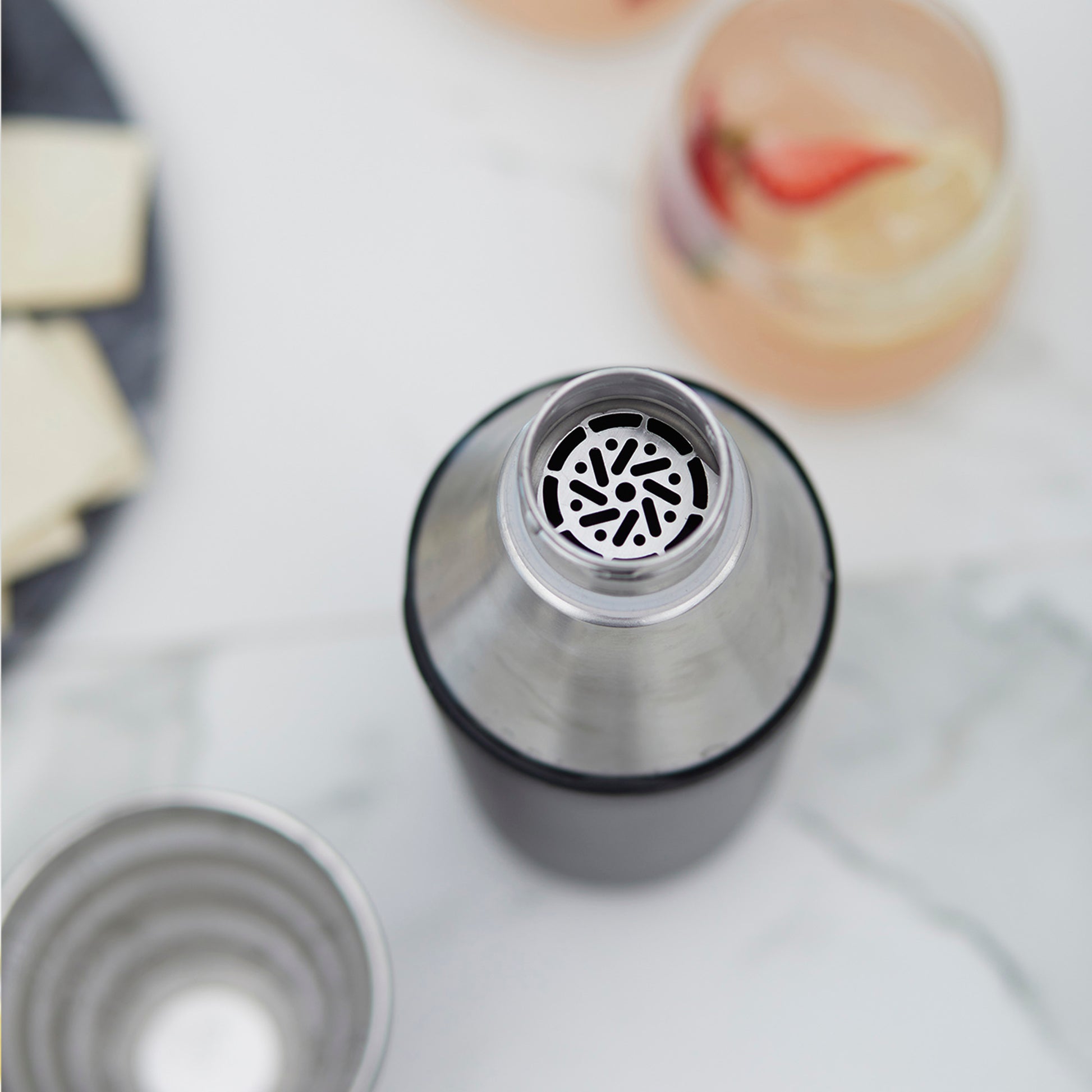 Con un formador de vertido eficiente y un agarre cómodo para manejarla con una sola mano, esta coctelera es una herramienta funcional y elegante. Libre de BPA y completamente a prueba de fugas, combina practicidad y diseño sofisticado para transformar cada bebida en una experiencia