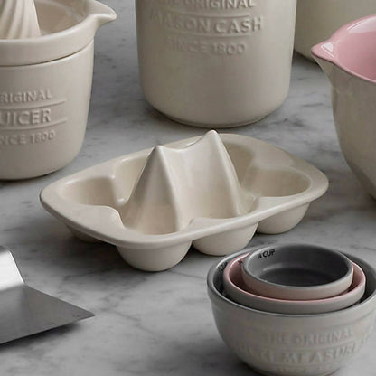 La Línea Mason Cash Innovative Kitchen ofrece soluciones inteligentes para las necesidades diarias de la cocina. Este Contenedor Huevos Multifunción Mason Cash tiene capacidad para 6 huevos y su eje central se eleva hasta un punto para que los huevos se puedan quebrar fácilmente en el mismo contenedor. Hecho de cerámica cuidadosamente seleccionada y resistente a las astillas es apta para lavavajillas. Calidad Mason Cash desde 1800.