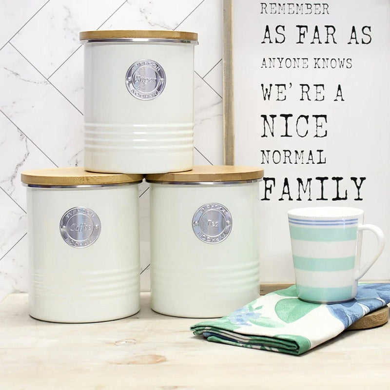 Los contenedores Typhoon están hechos de una sola pieza y de acero al carbono, que lo hace extremadamente resistente y duradero, además de ligero.Los contenedores tienen una tapa de fibra de bambú de origen sostenible y cuentan con un sello hermético para mantener el contenido fresco en el interior durante más tiempo. El contenedor tiene una insignia de detalle color plata, que te ayudará a mantener la cocina perfectamente organizada.Los contenedores tienen una capacidad de hasta 1 litro, lo que permite guardar cualquier tipo de azúcar, té o café.