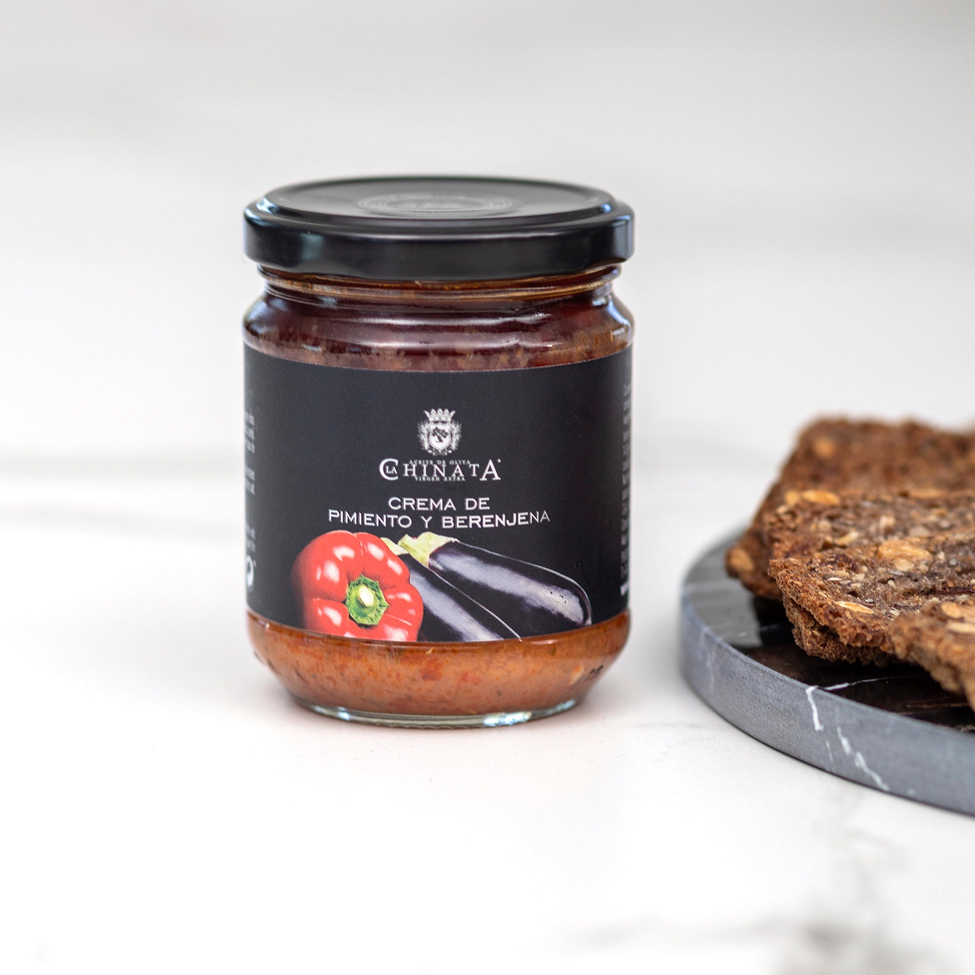 La Crema de Pimientos y Berenjenas 180 g La Chinata está elaborada con ingredientes de la huerta extremeña y aceite de oliva virgen extra, ofreciendo una textura suave y un sabor mediterráneo auténtico. Versátil y nutritiva, es ideal para untar en tostadas o bruschettas, acompañar carnes, pastas o servir como dip con grisines. Un producto gourmet que combina calidad, sabor y tradición, perfecto para quienes buscan una alimentación saludable y llena de carácter.