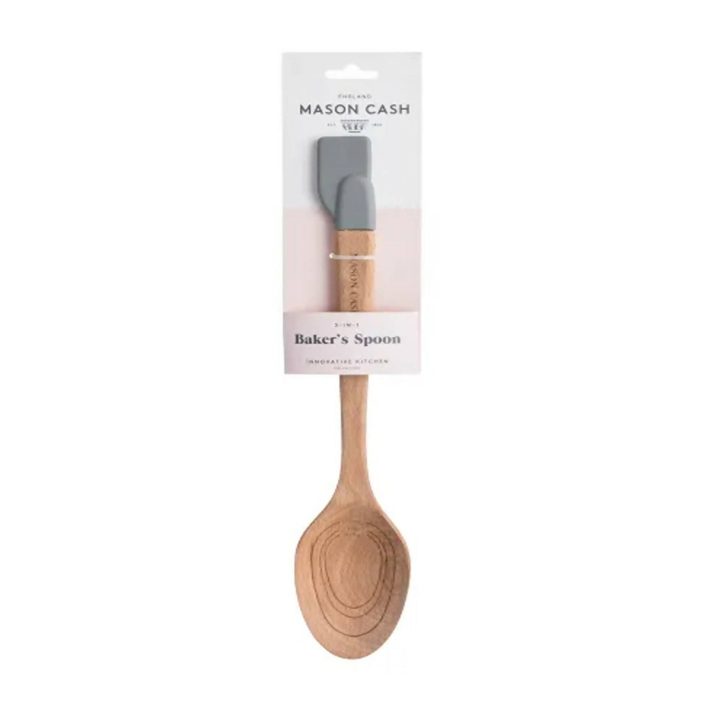 Aprovecha al máximo cada utensilio con la cuchara multifuncional de la colección Innovative Kitchen de Mason Cash. Fabricada en madera de haya sólida, combina tres funciones en un diseño único. La cabeza de madera es ideal para batir, revolver y mezclar, mientras que el mango incluye una punta de silicona que funciona como raspador y espátula. Además, incorpora marcas de medición: el círculo pequeño mide ½ cucharadita, el mediano 1 cucharadita y el grande 1 cucharada. Perfecta para medir, mezclar y raspar hasta el último trozo de tus ingredientes favoritos. Ya sea para agregar vainilla a la crema pastelera o aprovechar la mermelada del frasco, esta cuchara será indispensable en tu cocina. Diseñada para funcionalidad y estilo, es el complemento perfecto para tu colección Mason Cash.