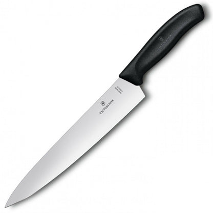 Cuchillo para trinchar con mango ergonómico. Nuestros cuchillos para trinchar están diseñados para superar cualquier desafío en la tabla de corte. Gracias a sus mangos ergonómicos y diseño equilibrado, usarlos es un placer, corten lo que corten. Cuentan con una hoja delgada y filosa para que pueda hacer cortes tan finos como desee y tan uniformes como necesite. Utilícelos para cortar con delicadeza y precisión carnes, frutas y verduras de todo tipo y tamaño.