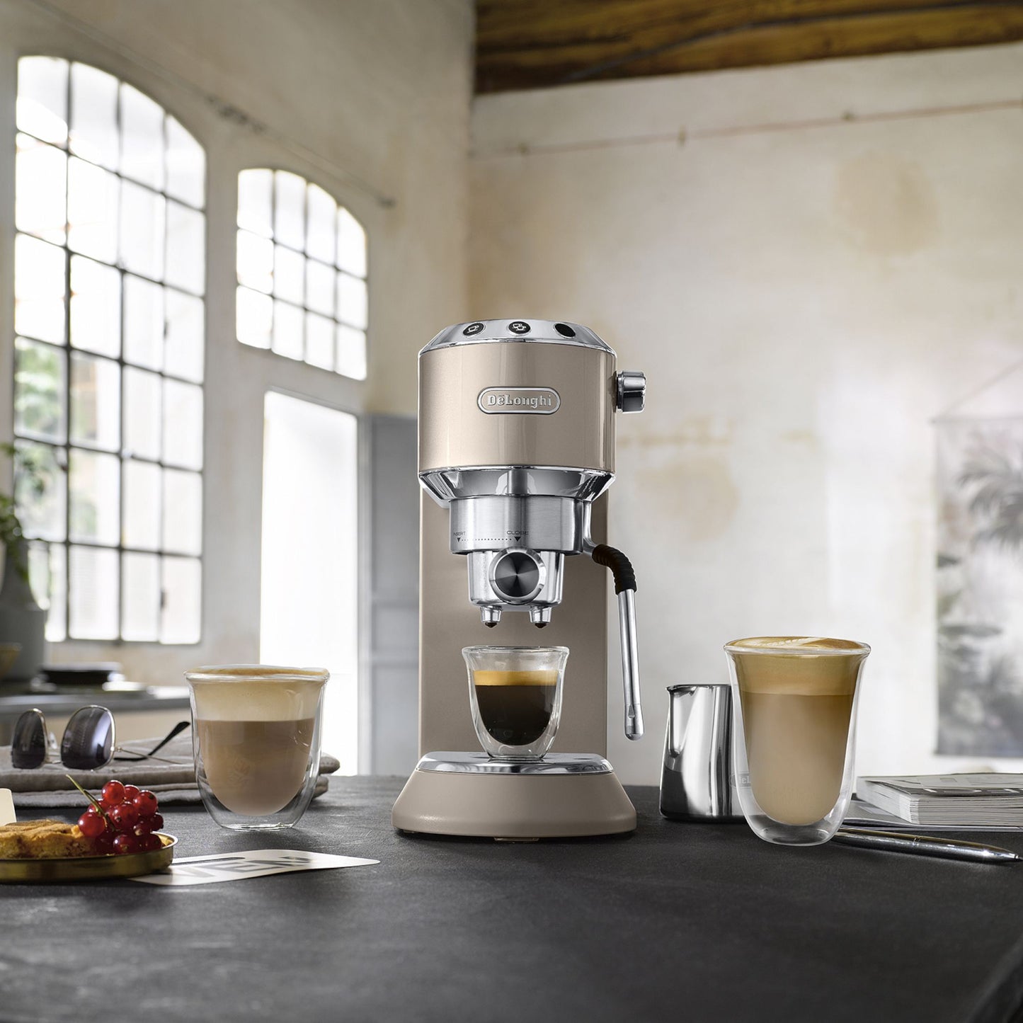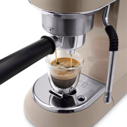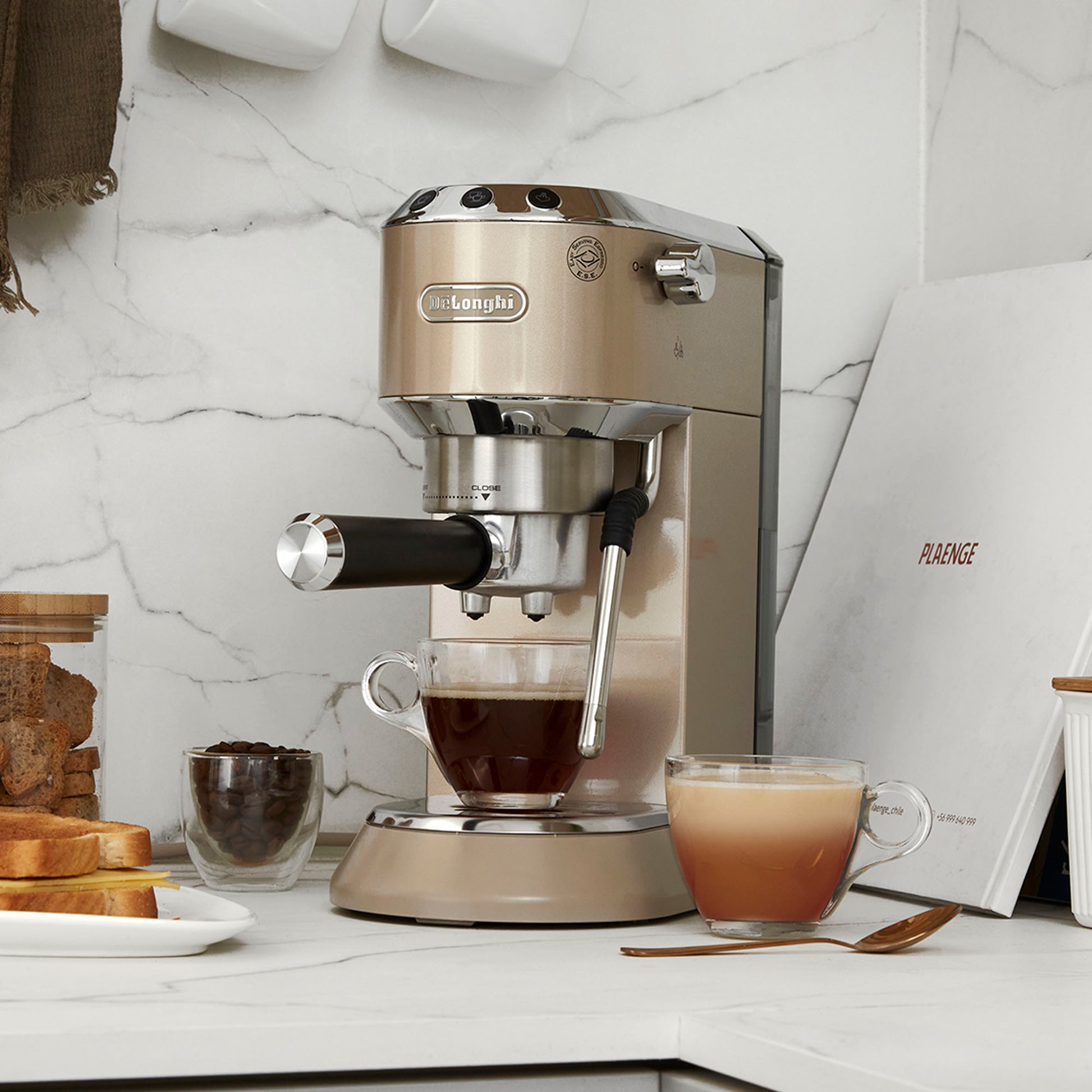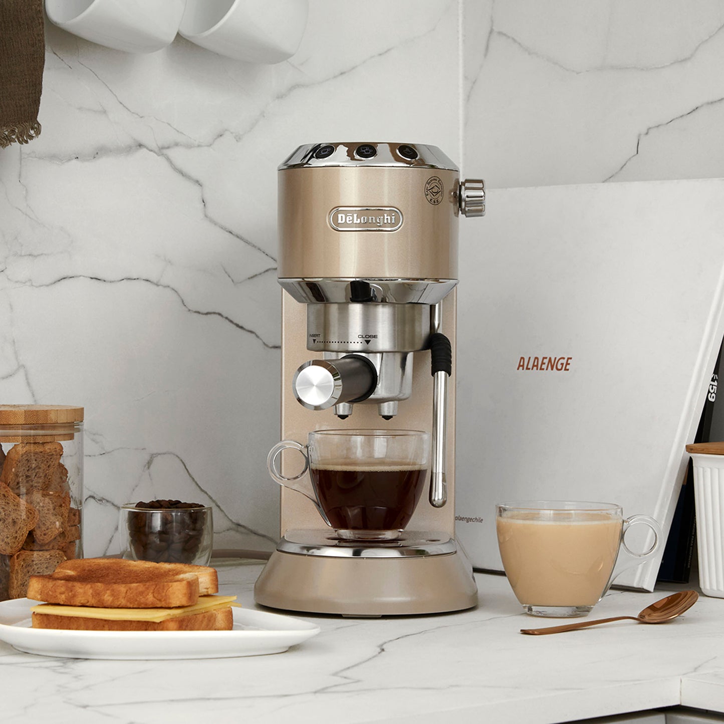 Descubre el arte del espresso en casa con la Cafetera Espresso Dedica Arte Gold DeLonghi EC885.BG. Cada mañana será un placer preparar tus bebidas favoritas con calidad profesional y sin complicaciones.