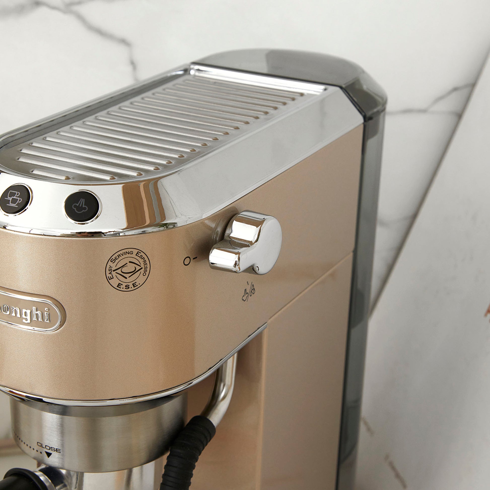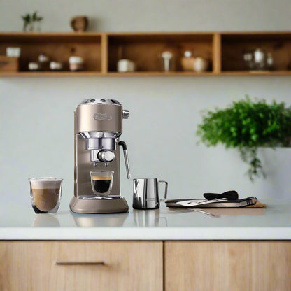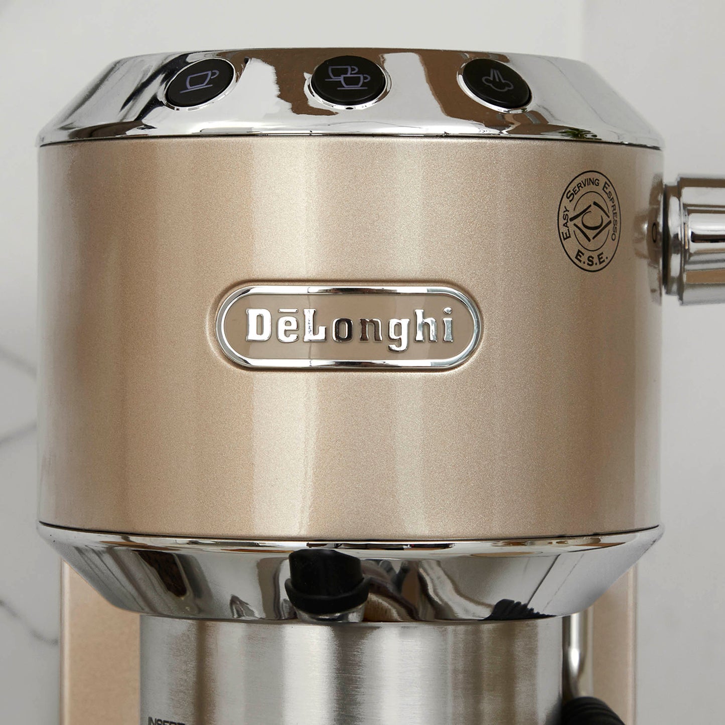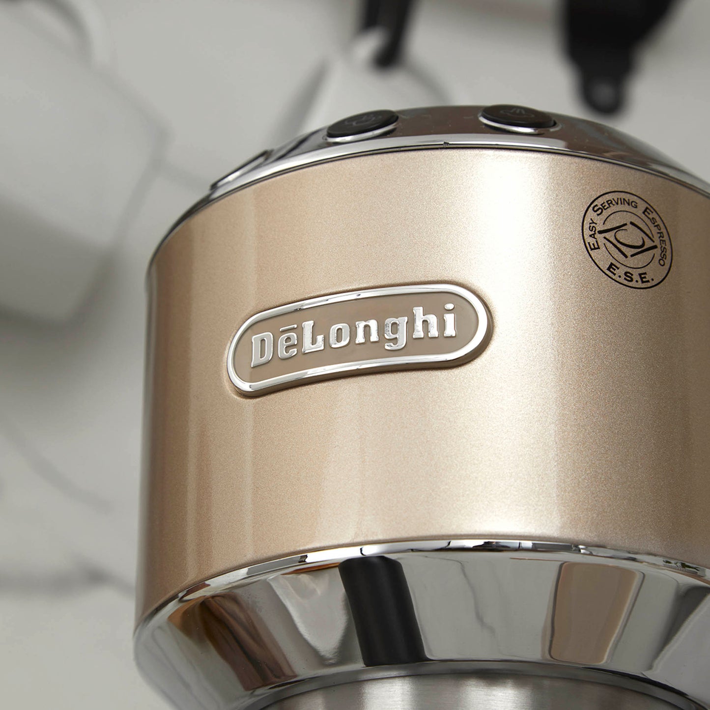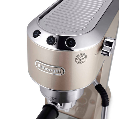 La Cafetera Espresso Dedica Arte Gold DeLonghi EC885.BG combina diseño compacto, estilo elegante y potencia para ofrecer una experiencia de café excepcional en casa. Este modelo, diseñado para adaptarse a cualquier cocina, es perfecto para los amantes del café que buscan calidad y comodidad en cada taza. Su acabado dorado aporta un toque de sofisticación, mientras que sus características avanzadas aseguran resultados profesionales.