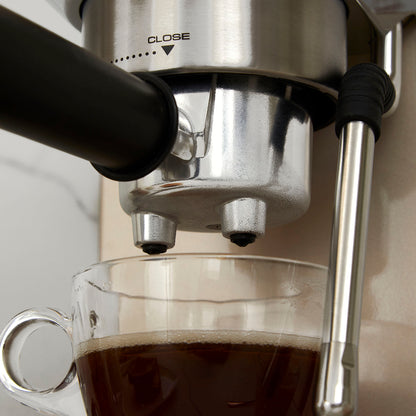 La Dedica Arte Gold cuenta con un sistema Thermoblock que calienta el agua rápidamente, permitiendo preparar espressos ricos en sabor y aroma en cuestión de segundos. Su portafiltro profesional es compatible con café molido y cápsulas ESE, brindándote la flexibilidad para personalizar tus bebidas. Además, incluye una varilla de vapor avanzada para crear una sedosa microespuma de leche, ideal para lattes y cappuccinos perfectos.