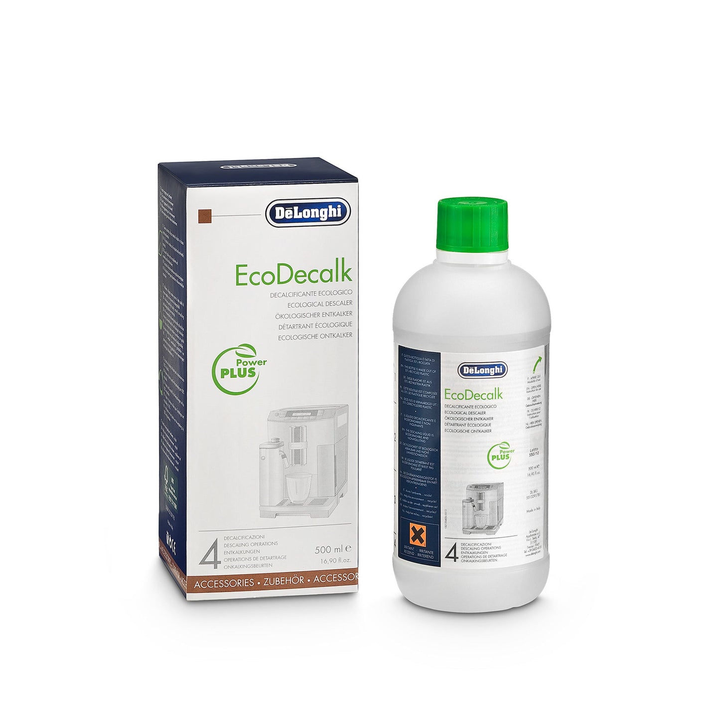 De'Longhi EcoDeCalk descalcificador natural para máquinas de café, reduce significativamente la probabilidad de descomposición prematura debido a la acumulación de incrustaciones, aumenta la eficiencia energética y mejora el sabor y la crema del café. EcoDeCalk de De'Longhi está hecho con ácido láctico al 100%, ss adecuado para todas las máquinas de café expresso y superautomáticas El líquido es más fácil y más rápido de usar que las tabletas desincrustantes de la máquina de café, y mantendrá su máquina funcionando sin problemas para que siempre pueda disfrutar de sus bebidas favoritas.