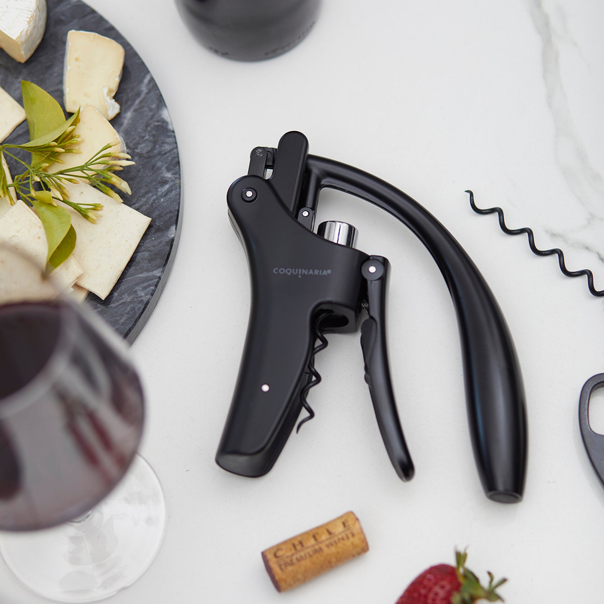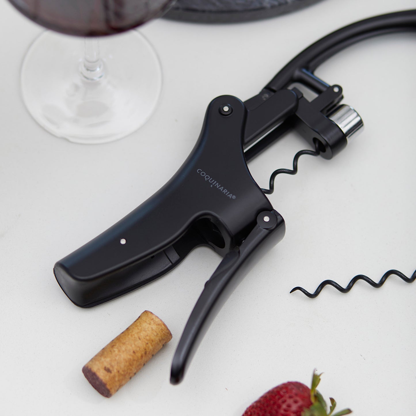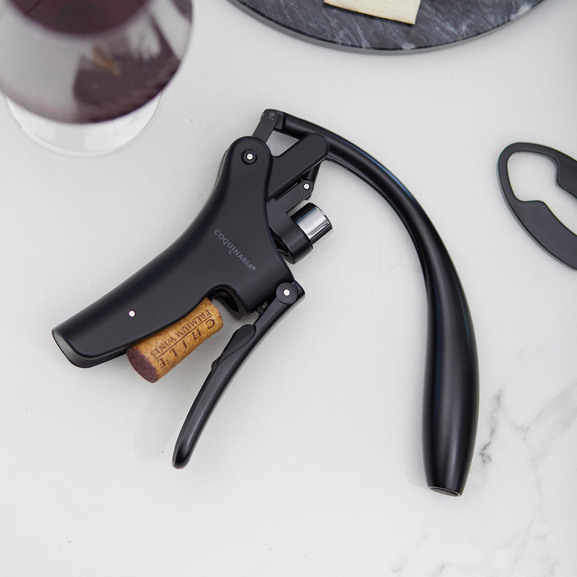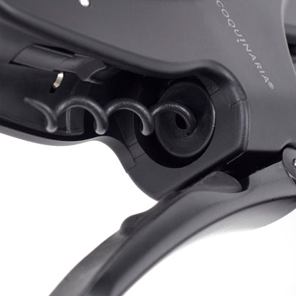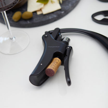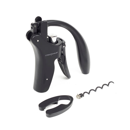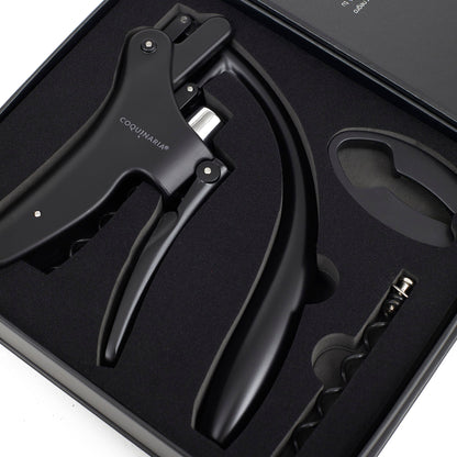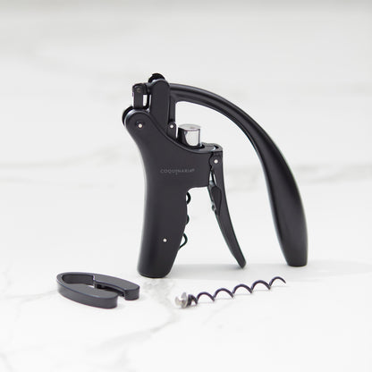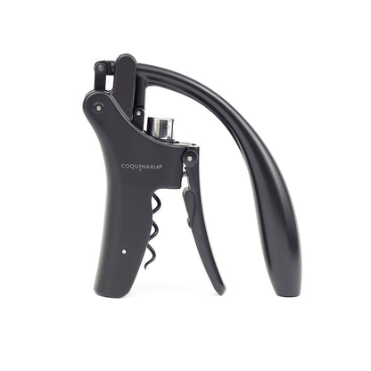 Este descorchador de vino fusiona elegancia y rendimiento en cada detalle. Su diseño ergonómico y acabado en negro mate ofrece un aspecto sofisticado que transforma la experiencia de abrir una botella en un ritual. La palanca vertical de metal en aleación de zinc asegura una extracción suave y sin esfuerzo, mientras que el acero inoxidable satinado añade durabilidad y distinción. Equipado con un cortador de láminas y piezas en espiral adicionales, este descorchador no solo garantiza precisión, sino también un uso prolongado. Ideal para amantes del vino que valoran tanto el estilo como la funcionalidad en cada detalle.