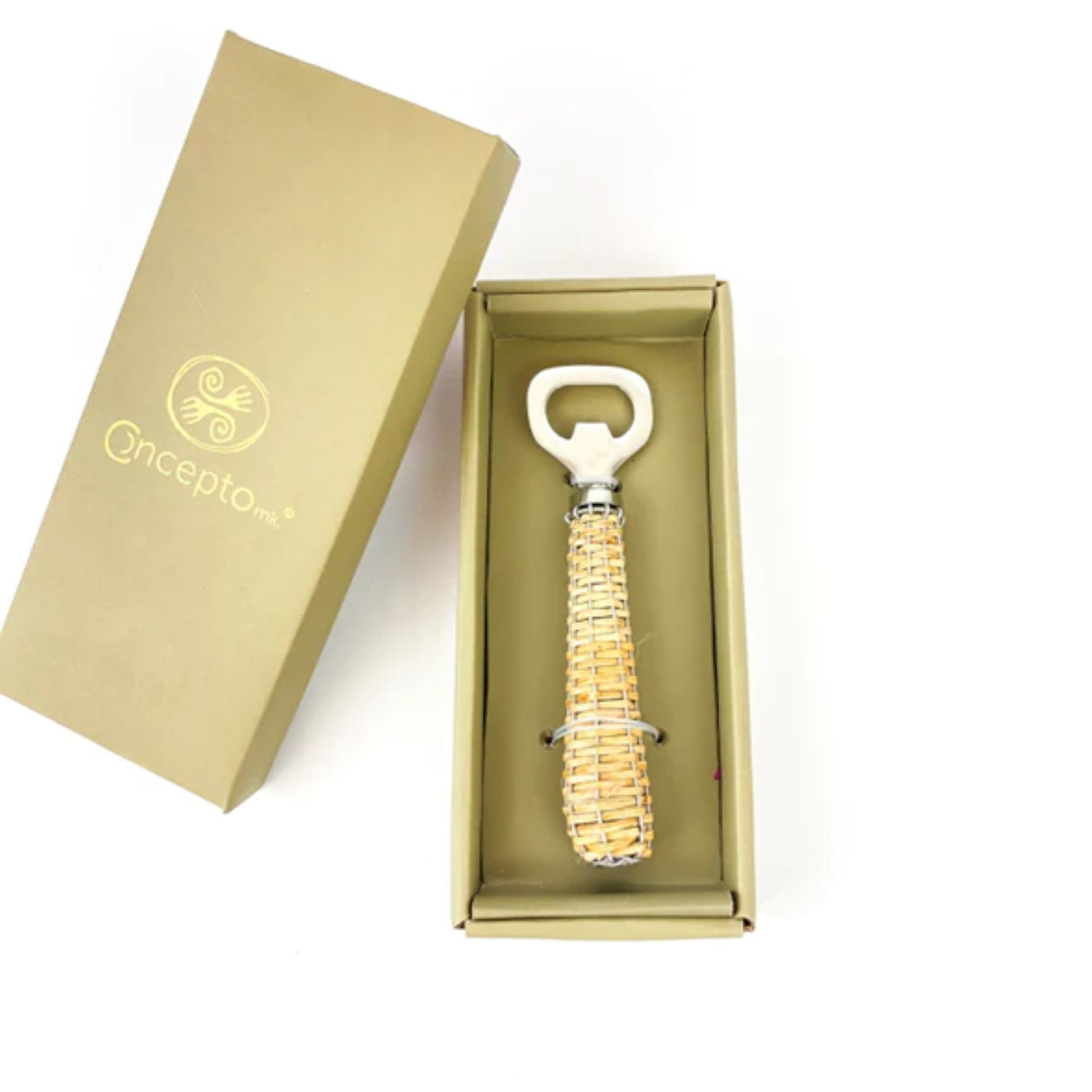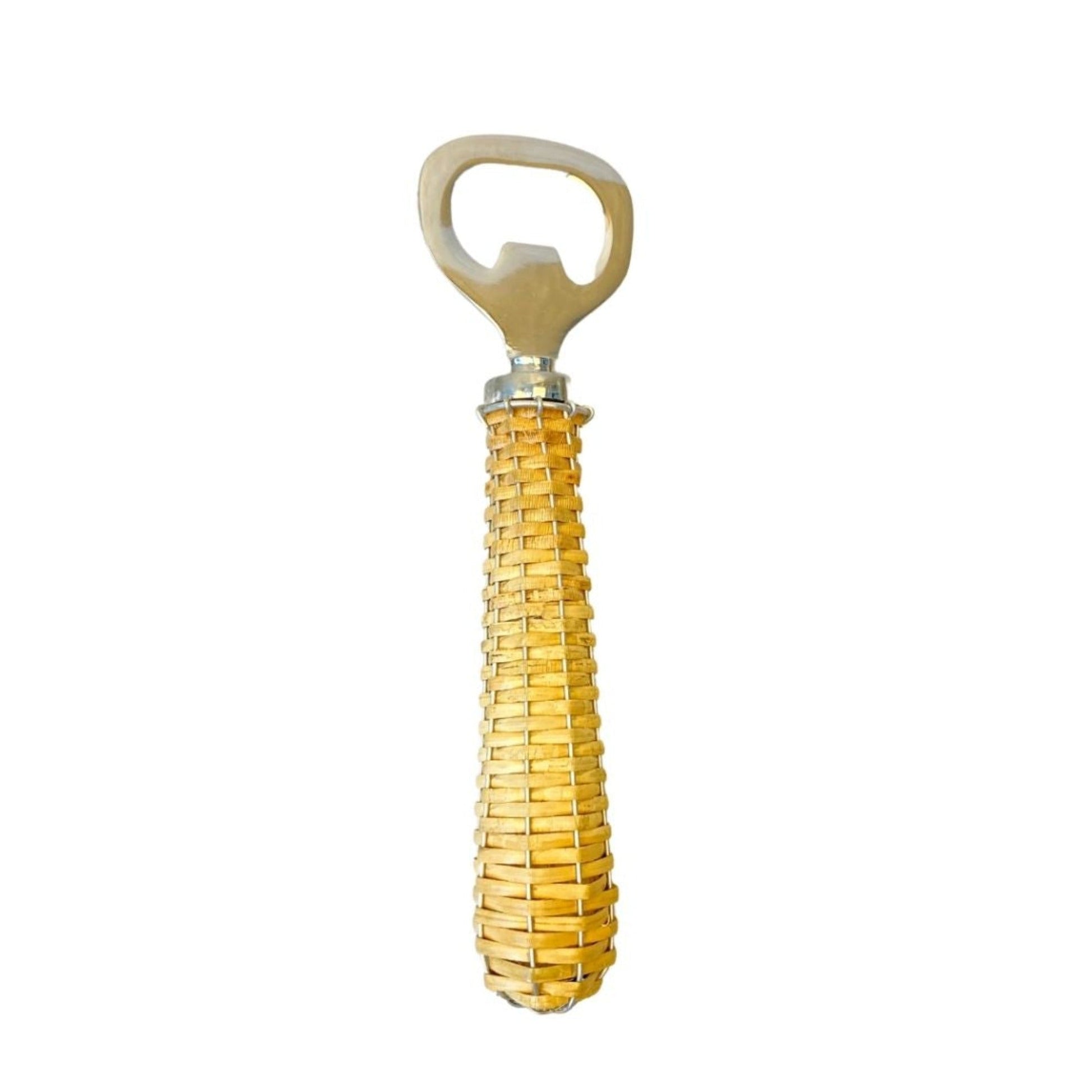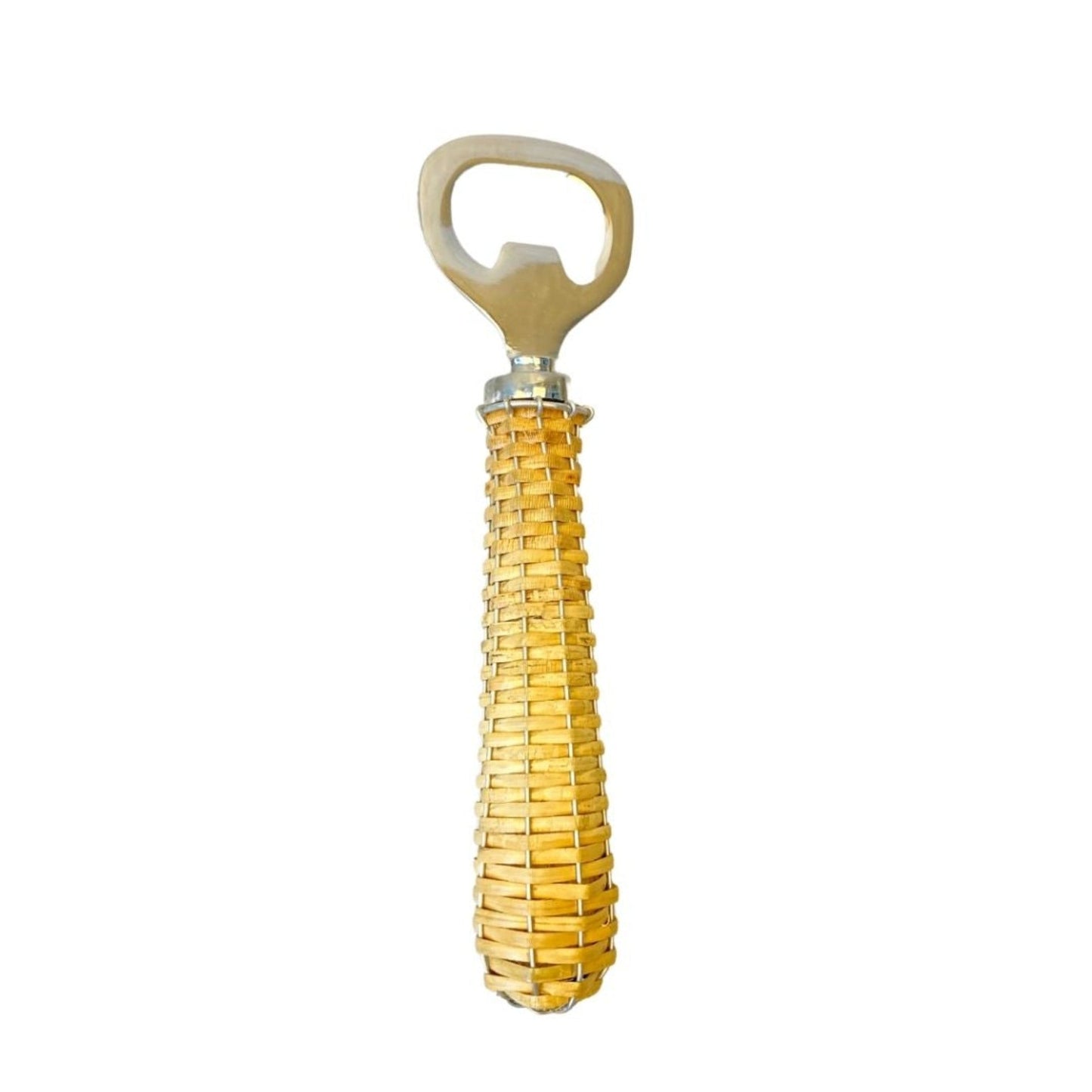 Precioso destapador de botellas con acabado de acero inoxidable y mango de ratán. Puedes armar tu set con nuestra línea de productos y accesorios para bar de Rattán, tenemos hieleras, cubeteras y tapa botellas. Producto importado directamente de India, elaborado por empresas de manufactura artesanal.