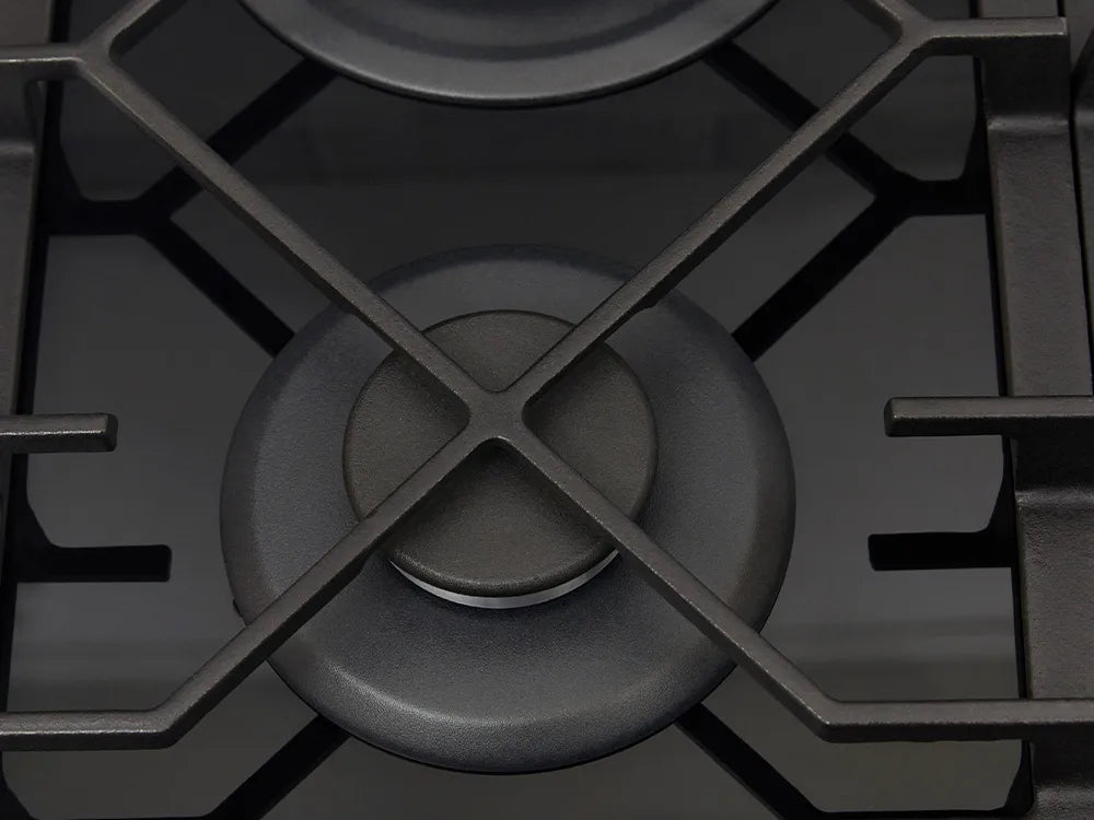 Equipada con 4 quemadores, incluyendo un quemador triple corona, proporciona una cocción potente y uniforme, perfecta para preparaciones que requieren alta intensidad. Sus parrillas de hierro fundido negro aseguran durabilidad y estabilidad, brindando una experiencia de cocina segura y profesional.