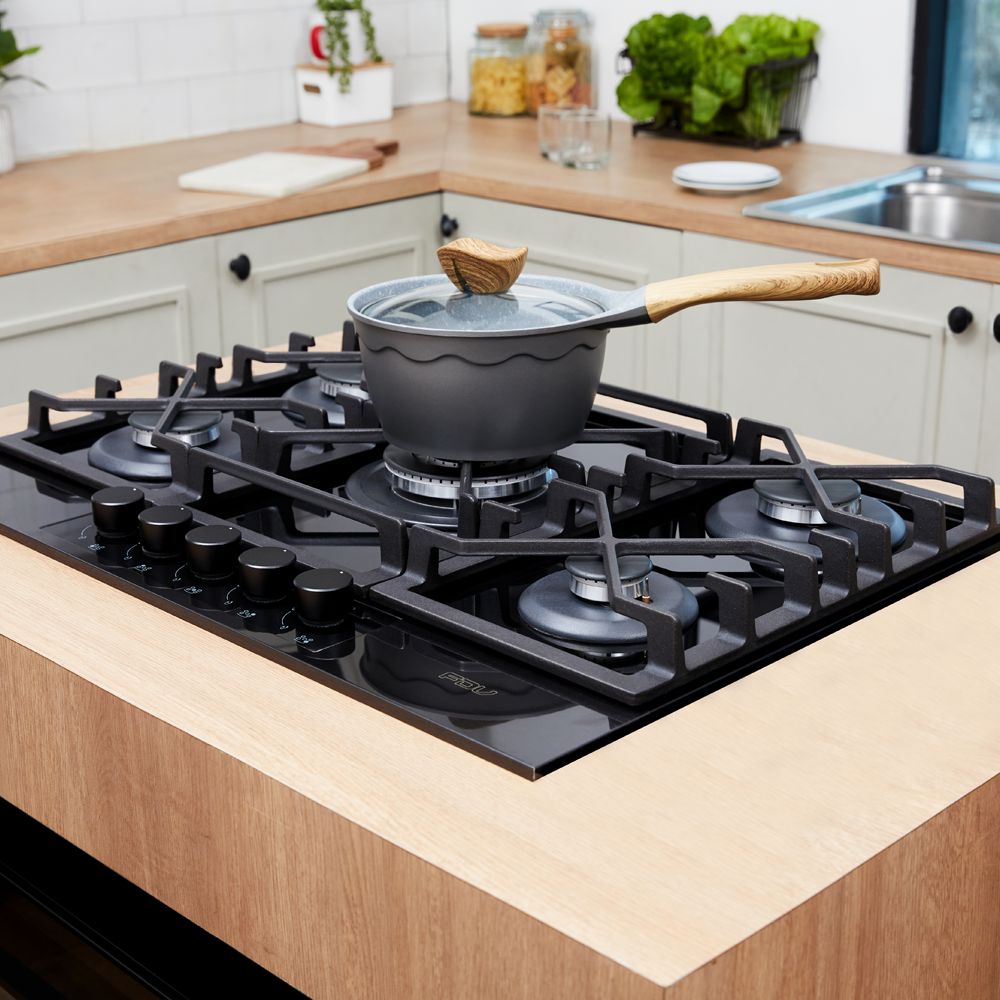 Disfruta de la funcionalidad de 5 quemadores en una encimera más compacta de 70 cm, ideal para cocinas con espacio reducido. Este diseño innovador ofrece la misma versatilidad que una encimera de 90 cm, optimizando el espacio sin sacrificar comodidad ni eficiencia.