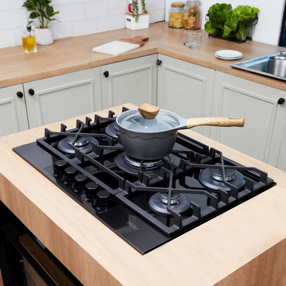 La encimera a gas FDV Signature 70 combina diseño moderno, eficiencia y seguridad, ideal para cocinas medianas. Su cubierta de cristal templado negro no solo aporta un estilo sofisticado, sino que también facilita la limpieza y resistencia al calor.