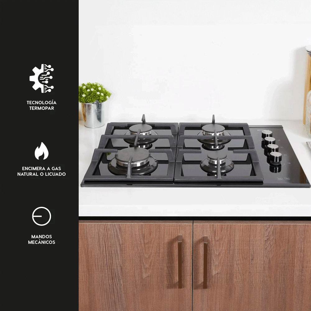Mecanismo diseñado para cortar automáticamente el suministro de gas si la llama se apaga accidentalmente, previniendo fugas peligrosas. Esto ofrece una mayor seguridad en la cocina y proporciona tranquilidad al usuario al minimizar el riesgo de accidentes.