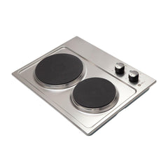 Acero inoxidable, indicador de placa encendida, 6 niveles de calor, 2 focos de cocción