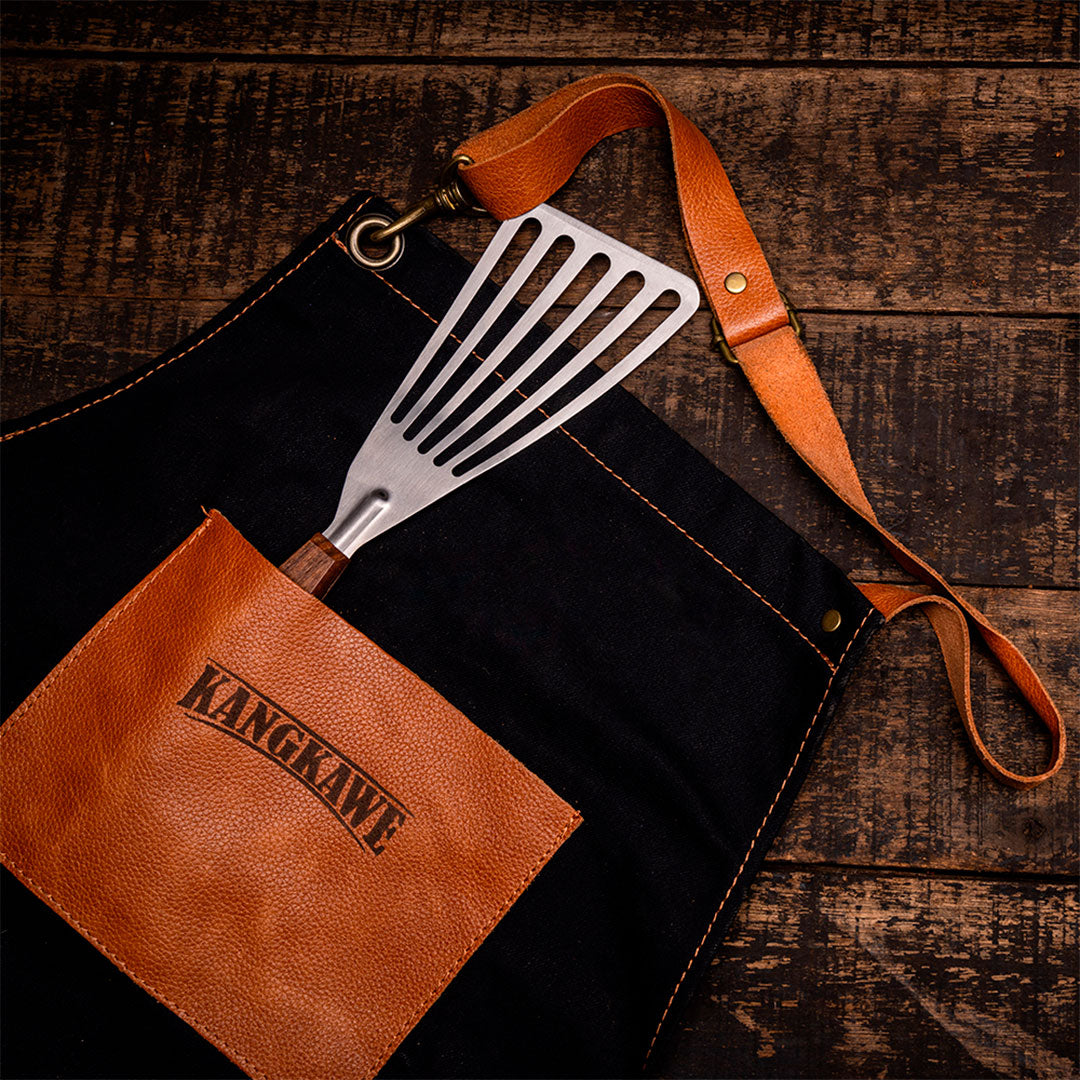 La Espátula Pescado & Verduras Kangkawe ha sido diseñada en Chile para el parrillero que no descuida ningún detalle. Su hoja delgada y precisa permite manipular pescados y vegetales con total control, cuidando la forma y textura de cada ingrediente. Fabricada en acero inoxidable de alta calidad, ofrece gran durabilidad, resistencia al calor y un diseño pensado para maniobrar con suavidad y firmeza. Ideal para preparaciones delicadas que exigen precisión y estilo. Medidas: Largo 32 cm, Ancho 10 cm.