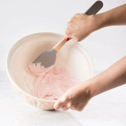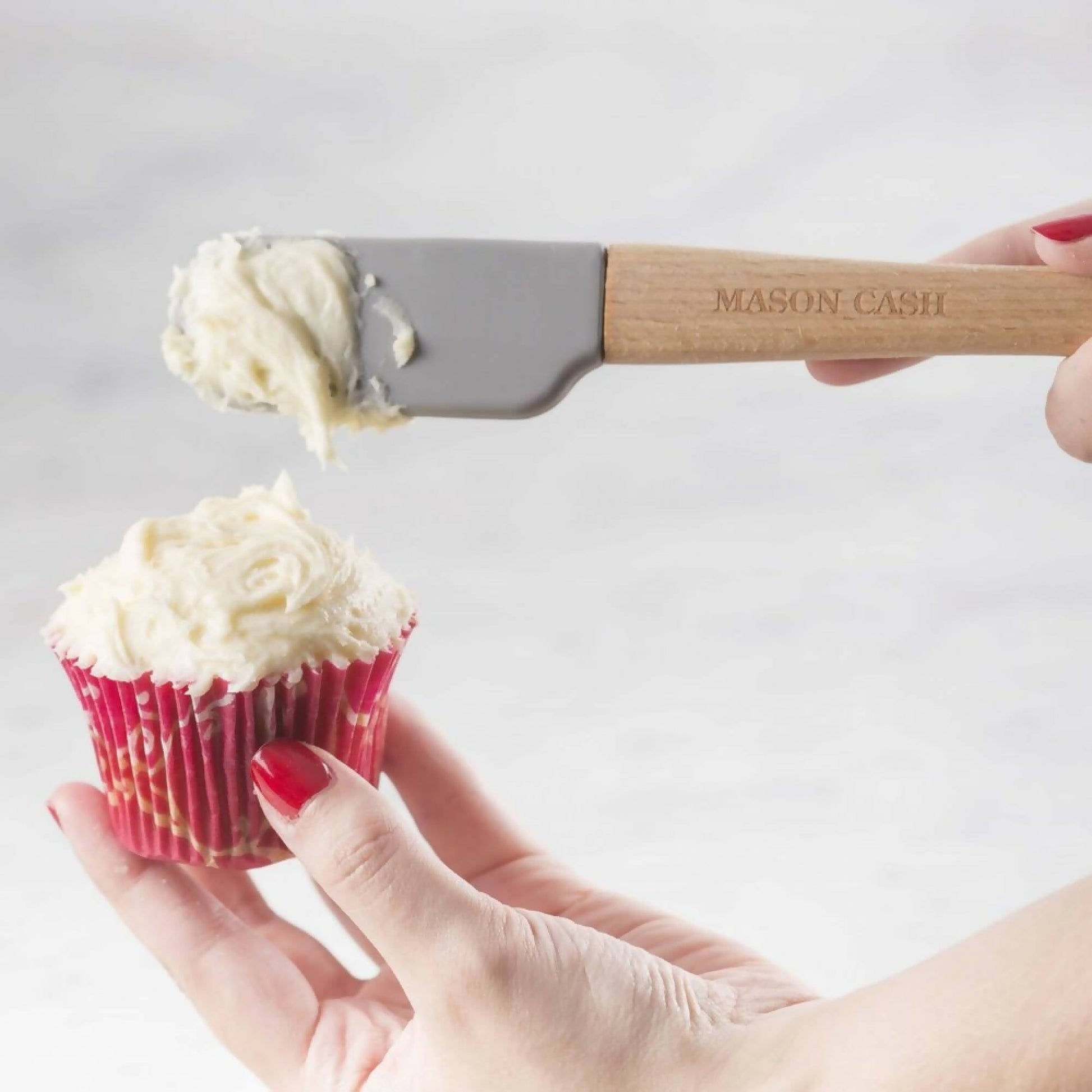 Aproveche al máximo cada utensilio de cocina con la colección Innovative Kitchen de Mason Cash! Esta espátula tiene una triple función como espátula, raspador de tazón y esparcidor en uno. La cabeza de espátula de silicona más grande es ideal para mezclar ingredientes y hacer batidos. Extraíble, para raspar tazones y sartenes sin esfuerzo, puede maniobrarlo fácilmente en esquinas estrechas y raspar hasta el último trozo de masa o glaseado. La espátula más pequeña es perfecta para glasear pasteles y galletas o para raspar hasta el último trozo de mermelada del frasco. Una buena espátula es fundamental para cualquier cocina; ¡Haga suya esta cuchara de doble función y doble terminación de Mason Cash!