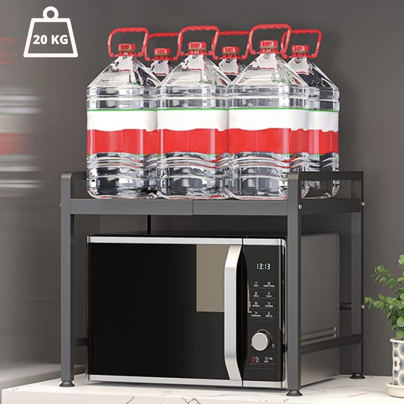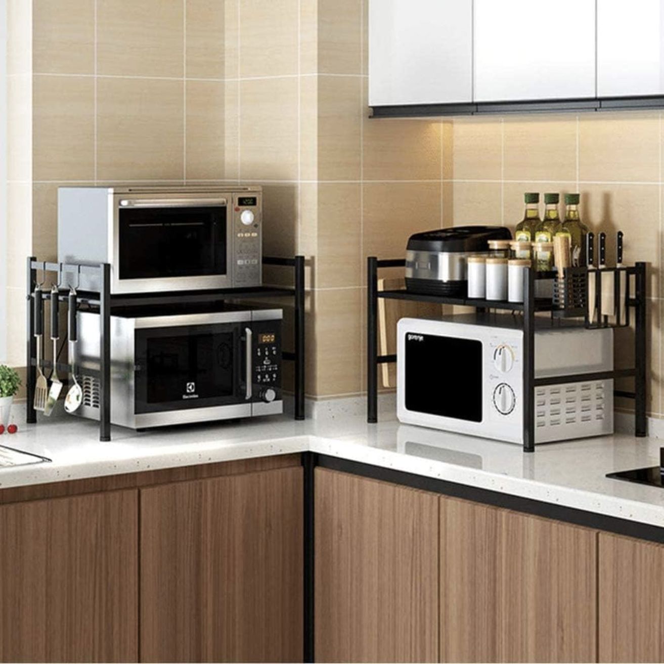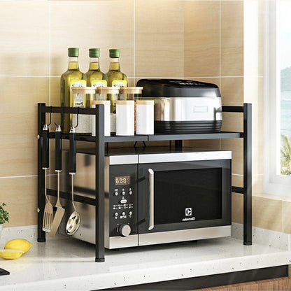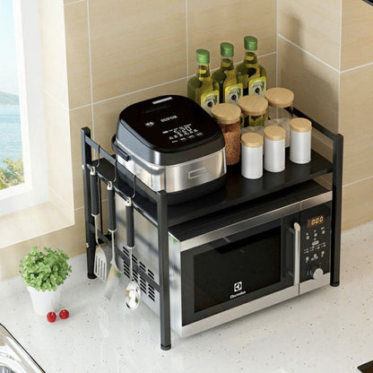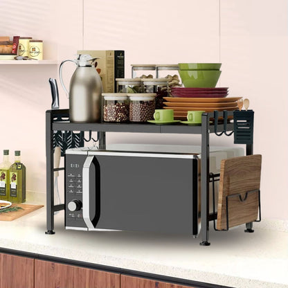 El Rack Expandible para microondas de Santú Home & Deco es un accesorio versátil y práctico que brinda una solución eficiente para maximizar el espacio en tu cocina. Este rack está diseñado para ajustar su tamaño mientras te permite aprovechar al máximo el espacio disponible en tu encimera. Una de las principales ventajas de este rack es su capacidad de expansión. Puedes ajustar su anchura para adaptarlo a la medida de tu microondas y así asegurarte de que encaje perfectamente. Esto es especialmente útil si tienes un microondas de tamaño no estándar o si deseas utilizar el rack para sostener otros electrodomésticos pequeños, además cuenta con accesorios como, soporte para tabla de Picar, Organizador de Cuchillos y Organizador de Cubiertos.