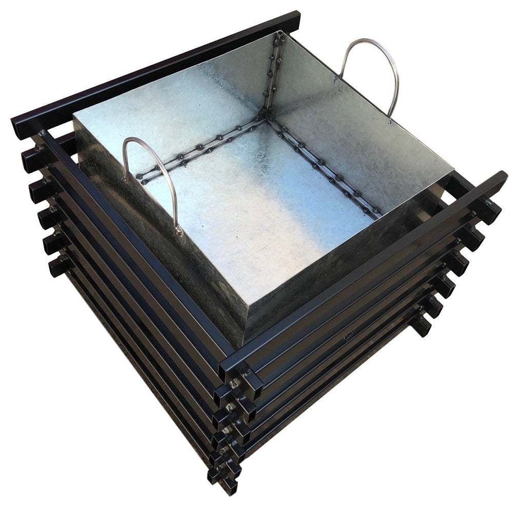 El Fogón Brasero Kas Chile, elaborado en fierro de alta resistencia, es ideal para compartir con amigos o familia y disfrutar al aire libre todo el año alrededor de la fogata. Úsalo en la terraza, el jardín, el parque, la playa, el camping al aire libre, etc! Se compone de una estructura exterior de fierro cuadrada negra y un contenedor interior de fierro desmontable para limpieza. El contenedor interior se encuentra elevado del piso para evitar quemaduras a la superficie de contacto. Las medidas del fogón son 54 x 54 x 43 cm (altura). Se puede utilizar con carbón o leña.