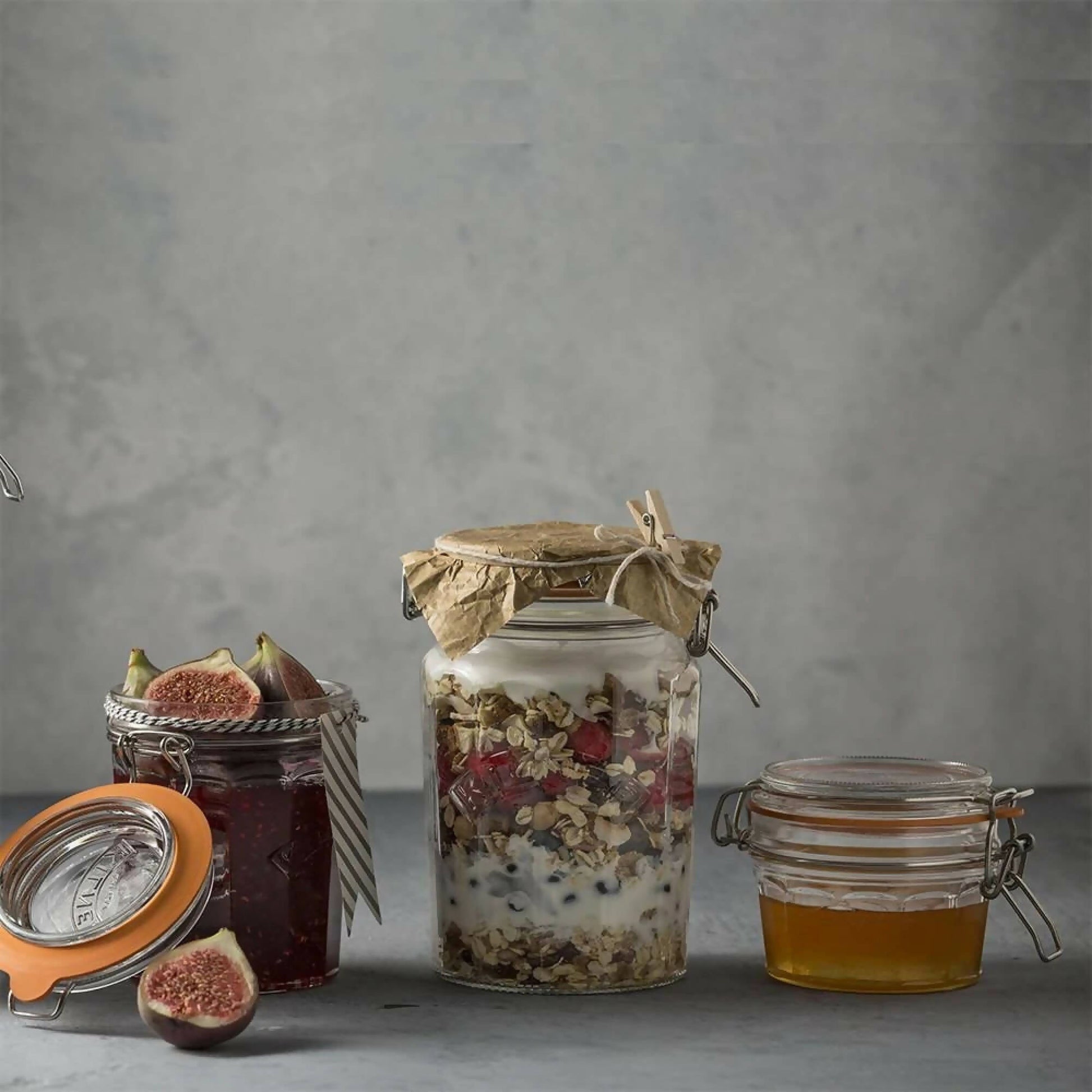 El Frasco Faceteado con Cierre Clip 0,45 Litros Kilner es la forma más linda y práctica de conservar tu recetas. Sus bordes faceteados le entregan un distintivo diseño que le da una aire de épocas pasadas. Ya sea si deseas almacenar comida no perecible o conservas, el icónico clip Kilner a prueba de aire está diseñado para conservar su contenido fresco por más tiempo.