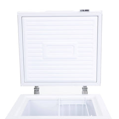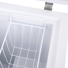 Freezer horizontal con sistema de refrigeración con frío estático. Posee Función Dual que congela y mantiene frescos los alimentos. Puedes ajustar la temperatura fácilmente en el termostato exterior. Incluye llave para la seguridad de tus productos, además un canastillo movible. El gabinete exterior está fabricado de acero prepintado con pintura epóxica (incluyendo la puerta) y protegido con film, mientras que el interior cuenta con aislación en poliuretano inyectado de alto impacto, libre de CFC (Clorofluorocarbonados, que afecta a la capa de ozono).