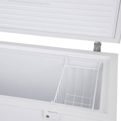 Freezer horizontal con sistema de refrigeración con frío estático. Posee Función Dual que congela y mantiene frescos los alimentos. Puedes ajustar la temperatura fácilmente en el termostato exterior. Incluye llave para la seguridad de tus productos, además un canastillo movible. El gabinete exterior está fabricado de acero prepintado con pintura epóxica (incluyendo la puerta) y protegido con film, mientras que el interior cuenta con aislación en poliuretano inyectado de alto impacto, libre de CFC (Clorofluorocarbonados, que afecta a la capa de ozono).