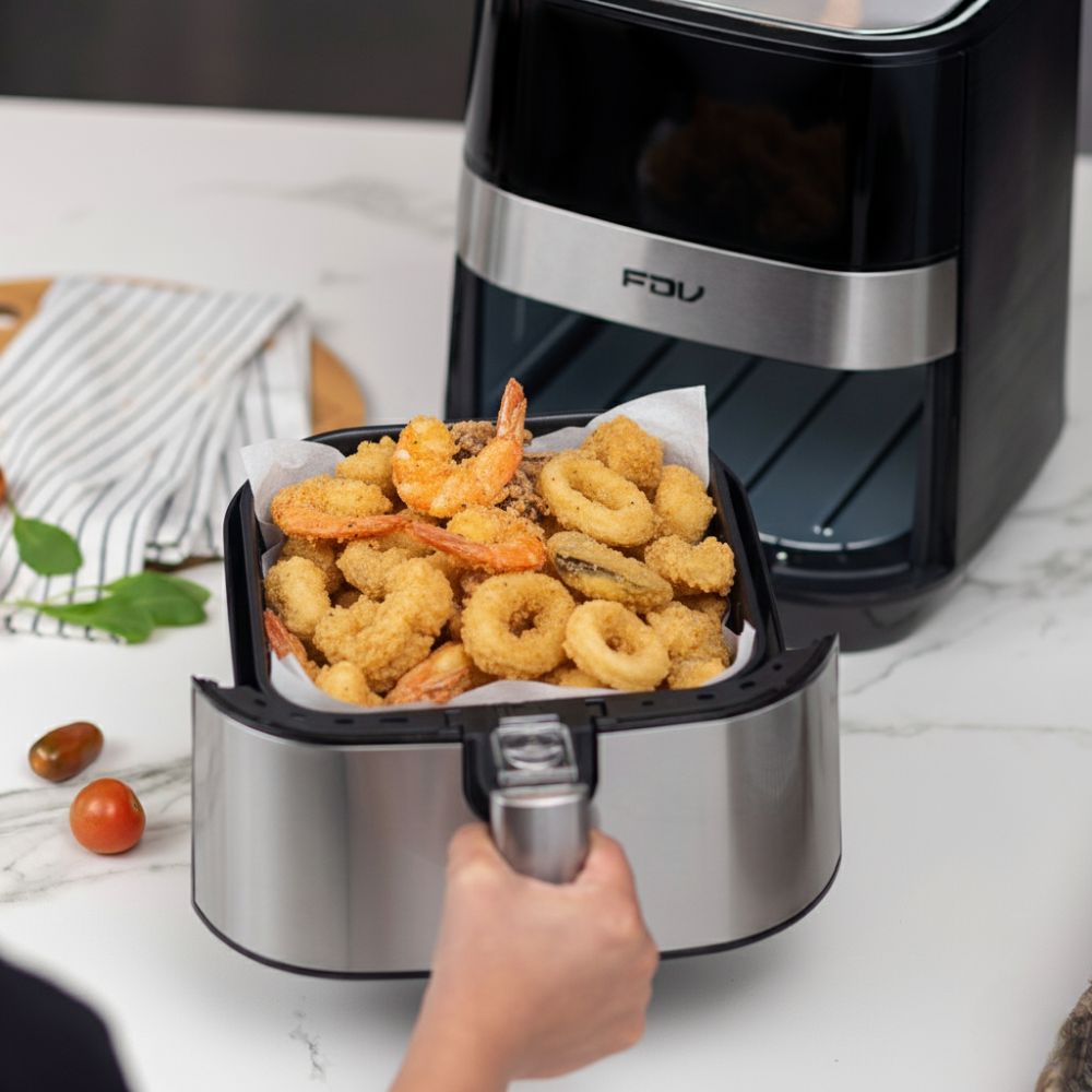 La Freidora Airflow 3.5 Lts FDV transforma tu forma de cocinar con hasta 80% menos grasa que las freidoras tradicionales. Gracias a su tecnología de aire caliente, logra cocciones crujientes y sabrosas sin aceite. Ofrece 9 funciones automáticas y control manual para personalizar tus recetas. Su panel digital táctil permite ajustar temperatura hasta 200°C y temporizador hasta 60 minutos, garantizando precisión. Con potencia de 1500 W, cocina rápido y parejo. Su canasto antiadherente desmontable facilita la limpieza. Más funciones, mejor diseño y mayor capacidad que otras de su categoría. Cocina fácil, saludable y deliciosa. ¡Disfruta de comidas sabrosas y nutritivas con el mínimo esfuerzo!