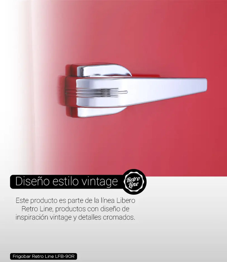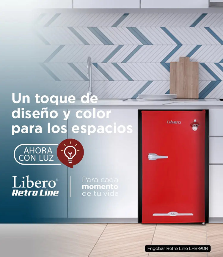 El Frigobar Retro LFB-90R de 90 Lts de Libero combina funcionalidad y estilo, ideal para espacios reducidos. Con una capacidad total de 98 litros, incluyendo un congelador de 8 litros, este frigobar añade un toque de diseño retro a cualquier espacio. Perfecto para quienes buscan eficiencia y estilo. Haz que tu espacio destaque con este elegante y práctico frigobar retro. Descubre la combinación perfecta de diseño y funcionalidad para tu hogar u oficina.