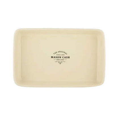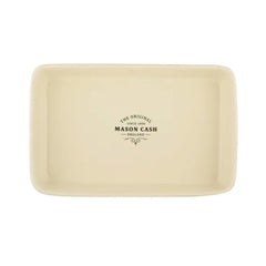 La fuente rectangular color crema de la Línea Heritage de Mason Cash está hecha de cerámica de gres y forma parte de una colección completa de fuentes para horno y artículos para la preparación de alimentos. Con un buen tamaño de 31cms x 21cms x 6 cms y una capacidad de 2.5 litros, la fuente tiene un tamaño ideal para comidas familiares como lasaña, pastel de papas, guisos o asados. Es perfecta para cocinar y servir en la mesa. La fuente lleva logotipo derivado de Mason Cash en la década de 1920 y la colección está inspirada en las fregaderos de principios del siglo XX .