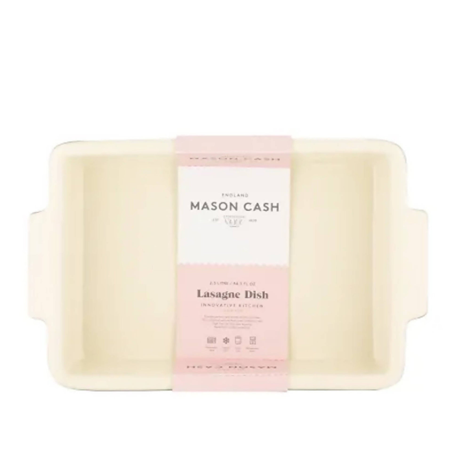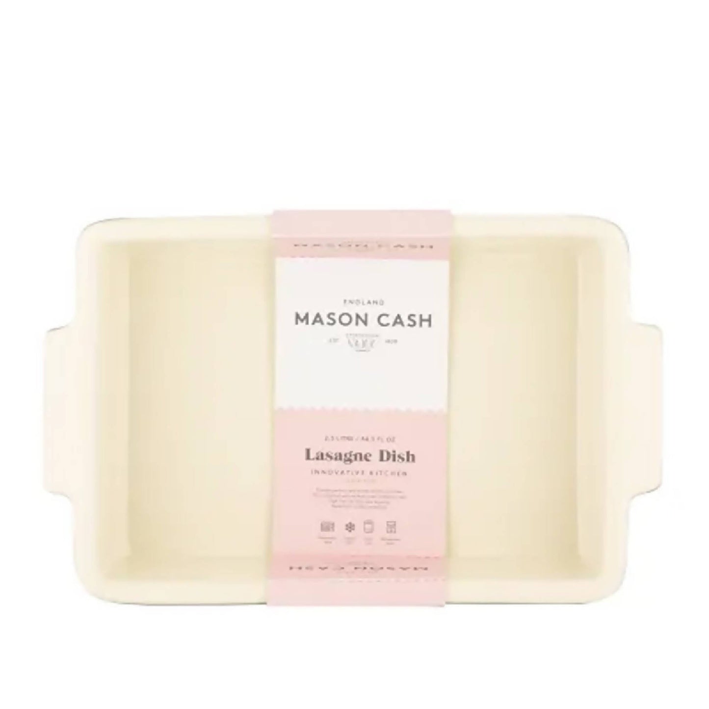 La Fuente de lasaña de la Línea Innovative Kitchen Mason Cash tiene características de diseño únicas que hornean quiches, flanes y pasteles perfectos en todo momento. Hecho de cerámica de gres esmaltada gris y crema, la fuente se calienta gradualmente para brindar una distribución uniforme al hornear. La base presenta áreas elevadas que actúan como salidas de aire para permitir una mejor circulación del calor cuando se coloca en el horno. Con 31,5 cms de largo x 20,5 cms de ancho x 7,3 cms de alto, la fuente ha sido fabricada con precisión para adaptarse perfectamente a las hojas de lasaña, con esquinas en ángulo recto para que las hojas de lasaña no tengan que romperse para que quepan cómodamente. La fuente también cuenta con paredes altas y empinadas para una mayor estratificación y una mejor distribución del calor.