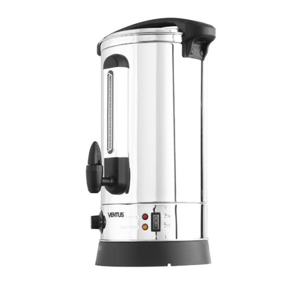 Los hervidores Ventus están hechos para hervir y mantener el agua a la temperatura perfecta, con la comodidad y seguridad que necesita tu negocio. Están construidos con doble capa de acero inoxidable que reduce el traspaso de calor a la superficie externa del hervidor y ayuda a mantener la temperatura del agua, y su tapa de está diseñada especialmente para evitar la condensación y goteos, a la vez que evita la apertura accidental. Cuenta con medidor de capacidad a la vista y llave dispensadora para facilitar su uso, y su sistema de high limit protege el funcionamiento del hervidor, cortando su funcionamiento cuando se queda sin agua.