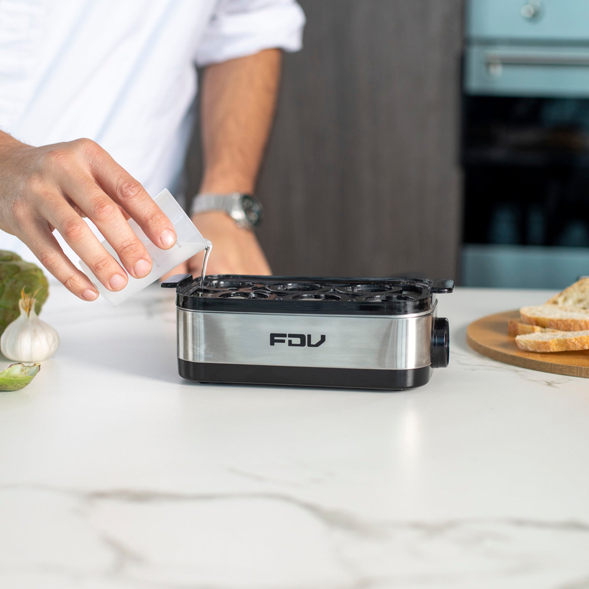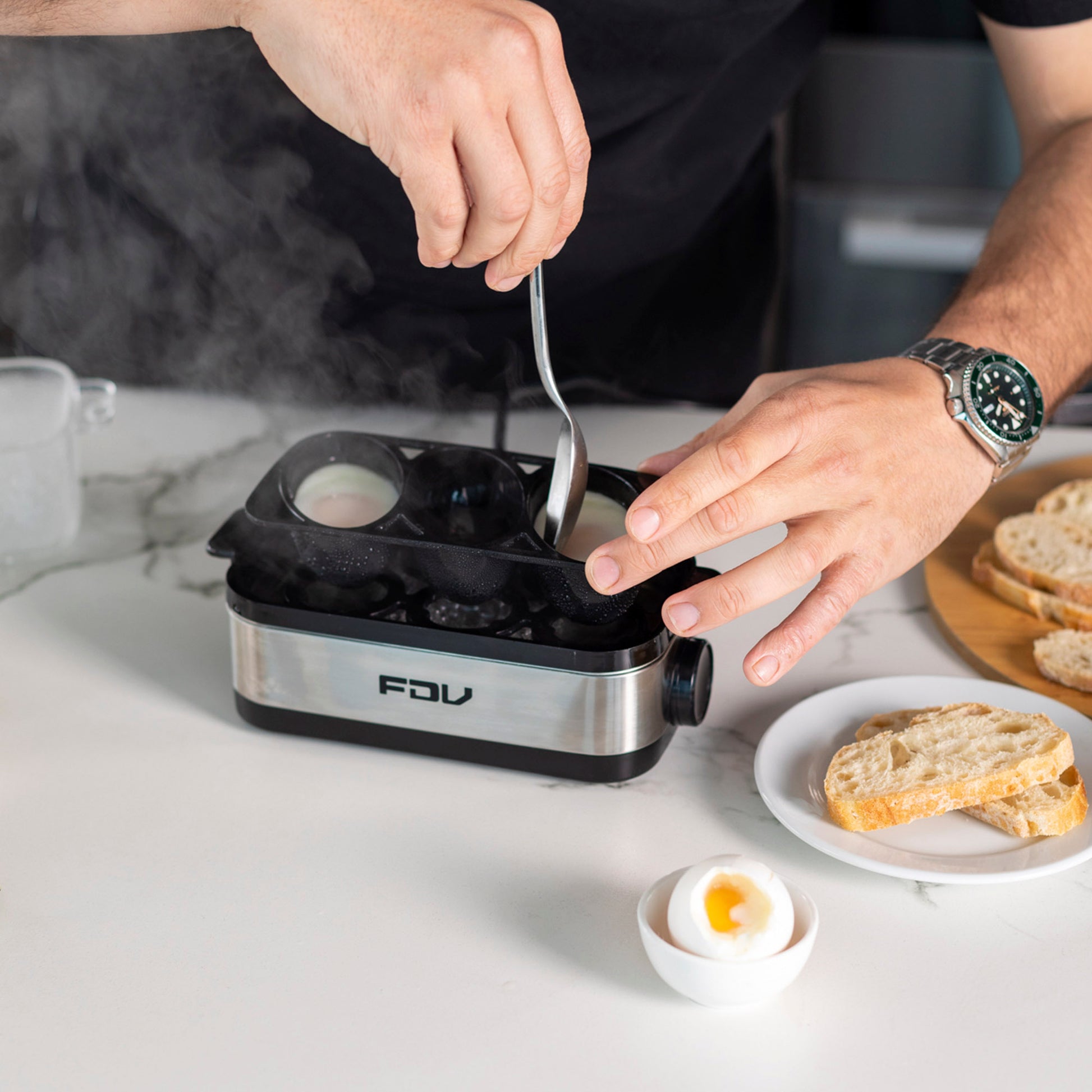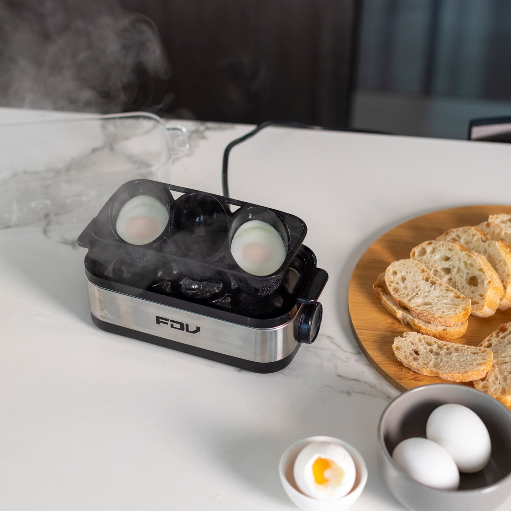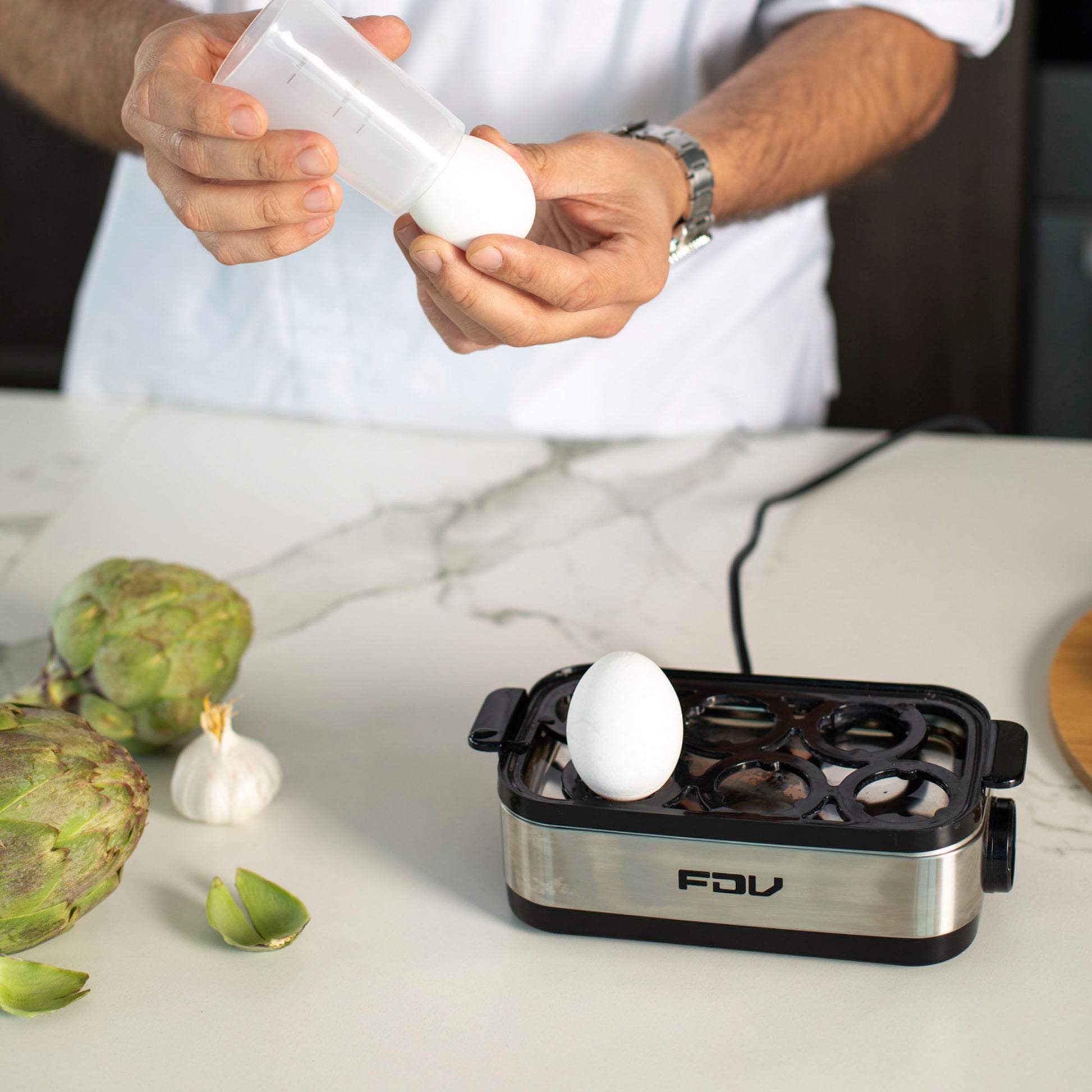 El Hervidor de Huevos Master Egg FDV ofrece 3 tipos de cocciones en 1 solo hervidor, destacando por su versatilidad y precisión. Puedes preparar huevos duros, pochados y estilo flan con resultados consistentes, gracias a su control de cocción por niveles y su cocción al vapor. Cocina hasta 6 huevos simultáneamente y elige entre tres niveles de cocción: blando, medio o duro. Incluye bandeja especial para huevos pochados y vaso medidor con perforador, ideal para evitar que los huevos se rompan. Su diseño compacto, fácil de limpiar y con apagado automático lo hace seguro y práctico para el día a día. Más que un hervidor: es una solución completa para quienes buscan practicidad, múltiples preparaciones y calidad superior en un solo aparato.