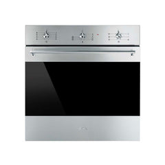 Descubre el Horno Classica 60 modelo SF6381X Smeg, un horno empotrable de diseño italiano con capacidad de 70 litros y convector para una distribución uniforme del calor.